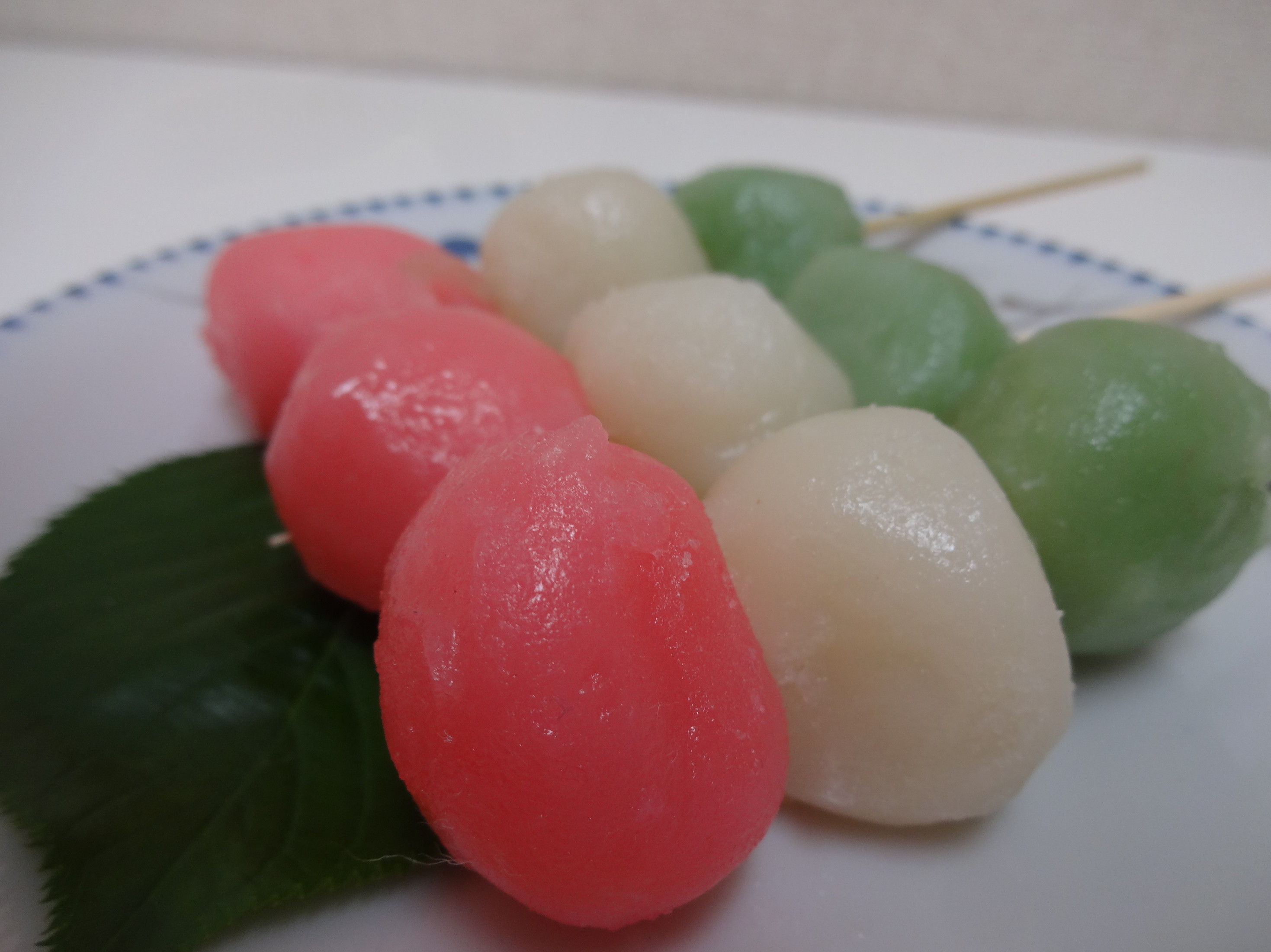 赤だんご・白だんご・緑だんごグループに分かれてつくりました。 とっても美味しそうなおだんごのできあがり!