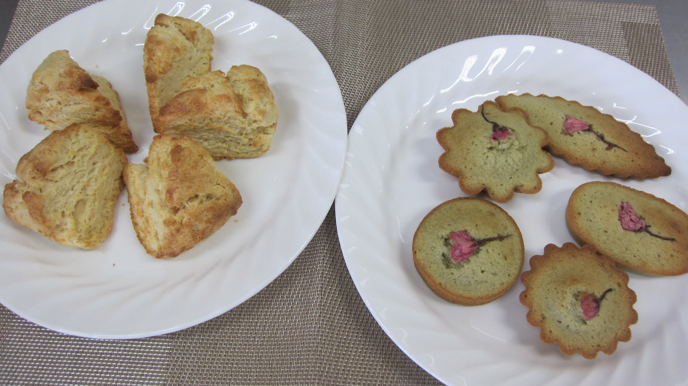 申込み多く人気の講座 フィナンシェは、桜の葉パウダーを生地に入れて、 春らしいスイーツ作り、 参加者のみなさまが喜ばれていました。