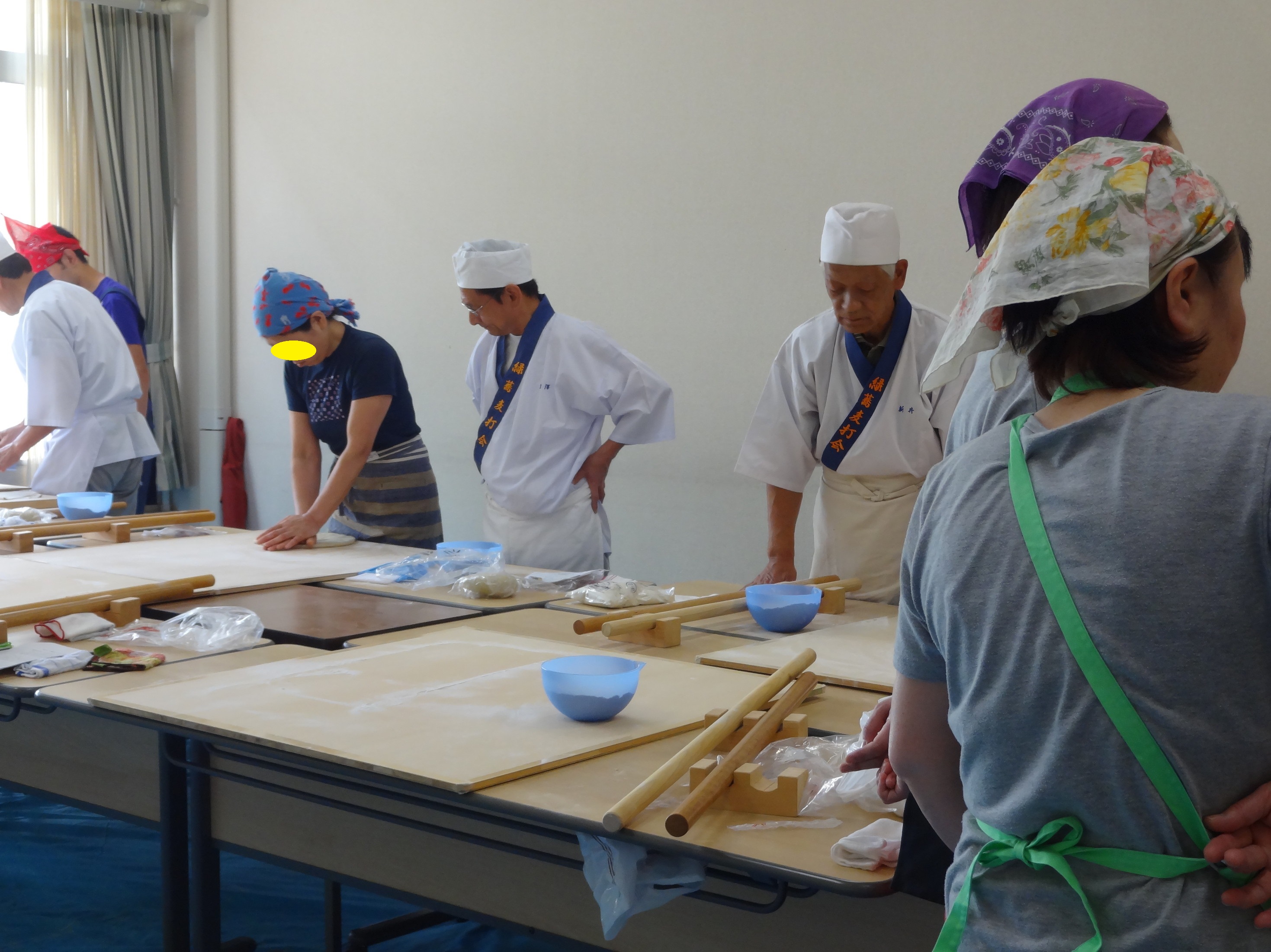 そば打ち塾雲水の講師はじめ助手の皆様にそば打ちを習いました。 ご自分で打ったおそばはいかがでしょうか。 面白かった、楽しかった、また参加したいとのお声をいただきました。
