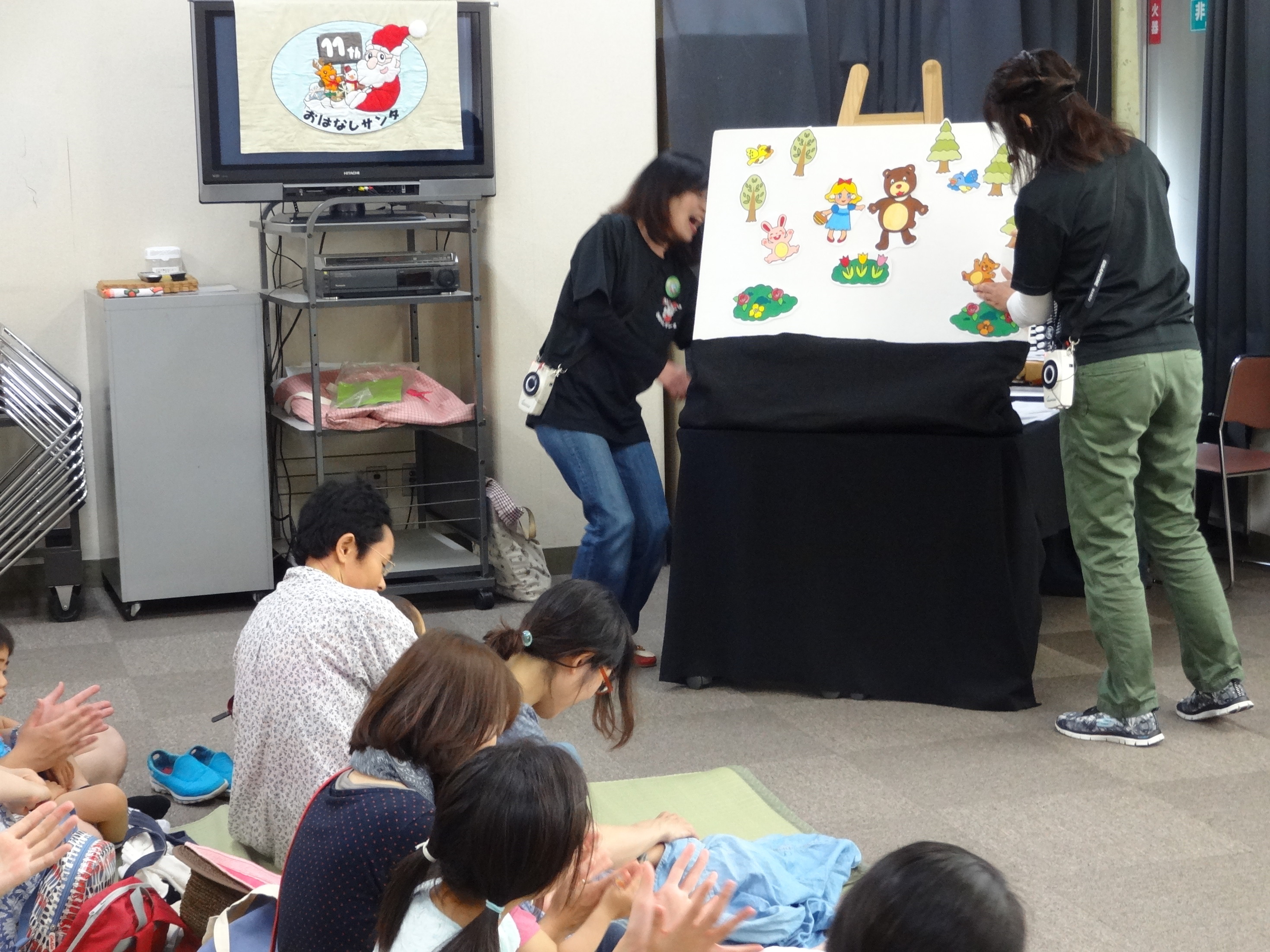 絵本「ぼくとりなんだ」 手袋人形「緑の草はら とっとこひつじ」 ミュージックパネル「森のくまさん」 など たのしいおはなしを聞きました。 【みどりおはなしフェスタスタンプラリー会場】