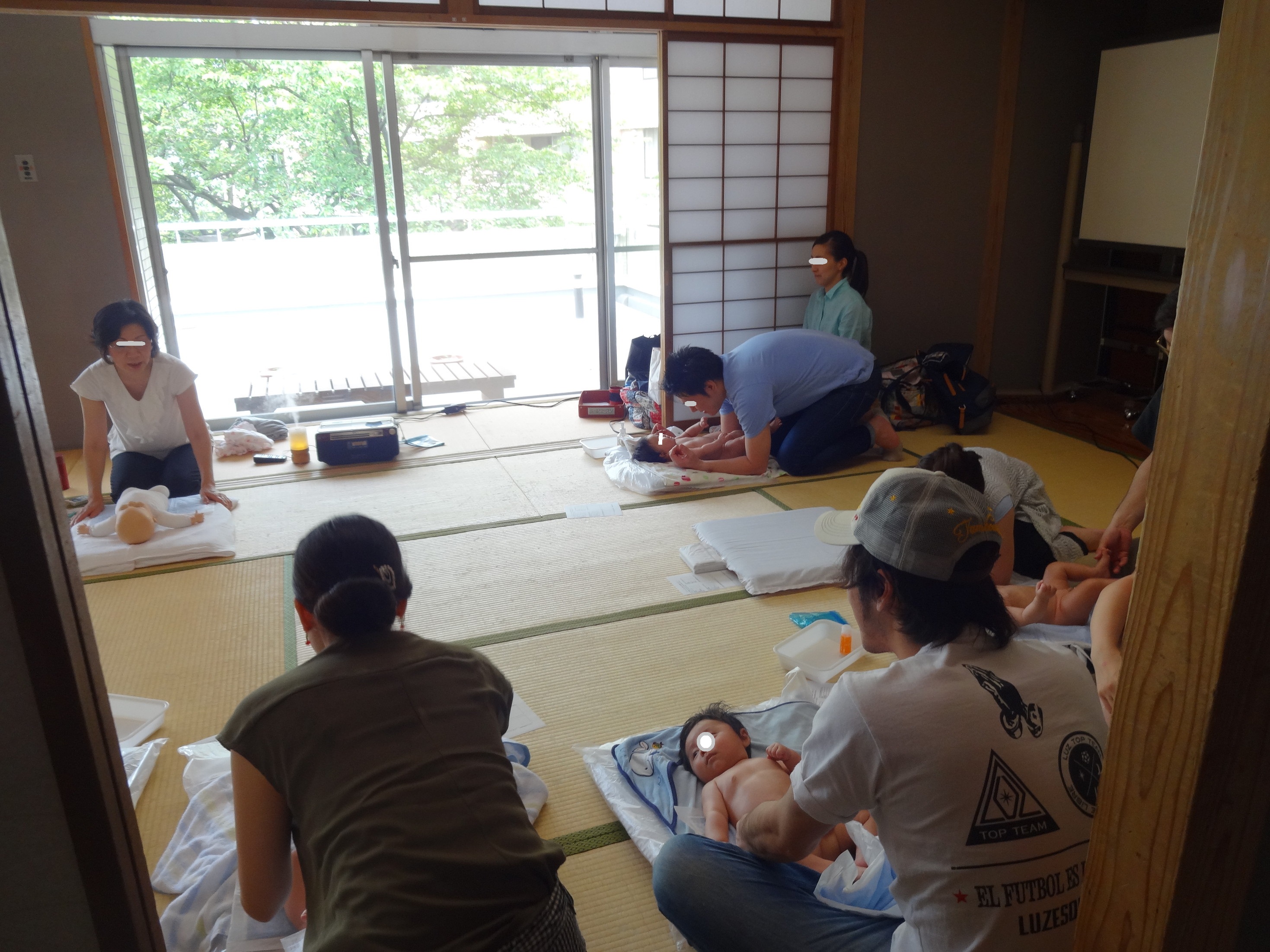 毎回赤ちゃんが揃うととっても心が和みますね。 残念ながら最終日・・・ 本日はパパと赤ちゃんのマッサージです。 ママは横で見守り、パパも赤ちゃんの前ではとっても素敵な笑顔で気持ちが溢れていました。 親子の微笑ましい姿に感動してしまいました❤