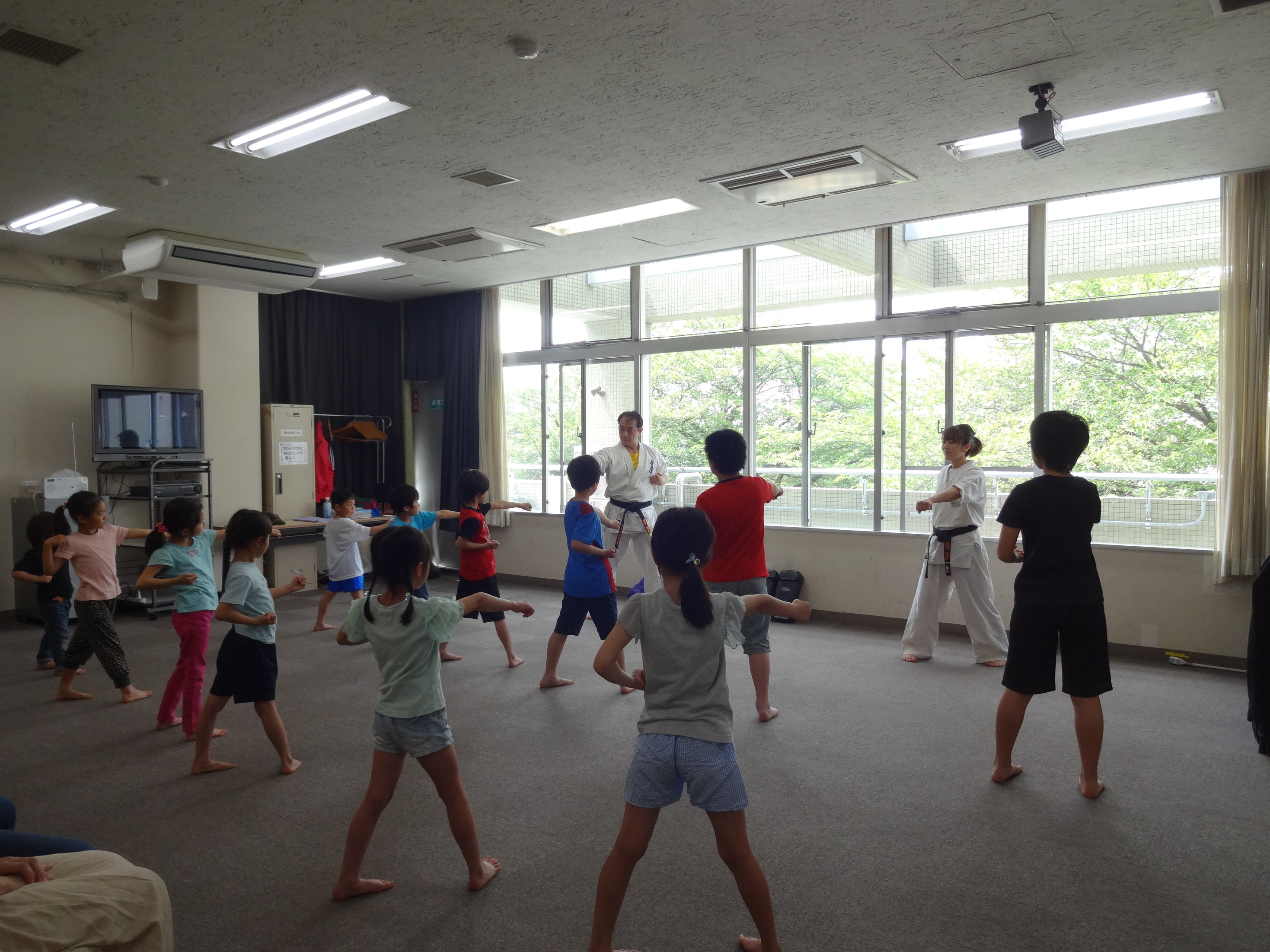 連休中の5月3日・4日・5日 3日間で空手体験を行いました。 基本から立ち方や護身術を教えていただきました。