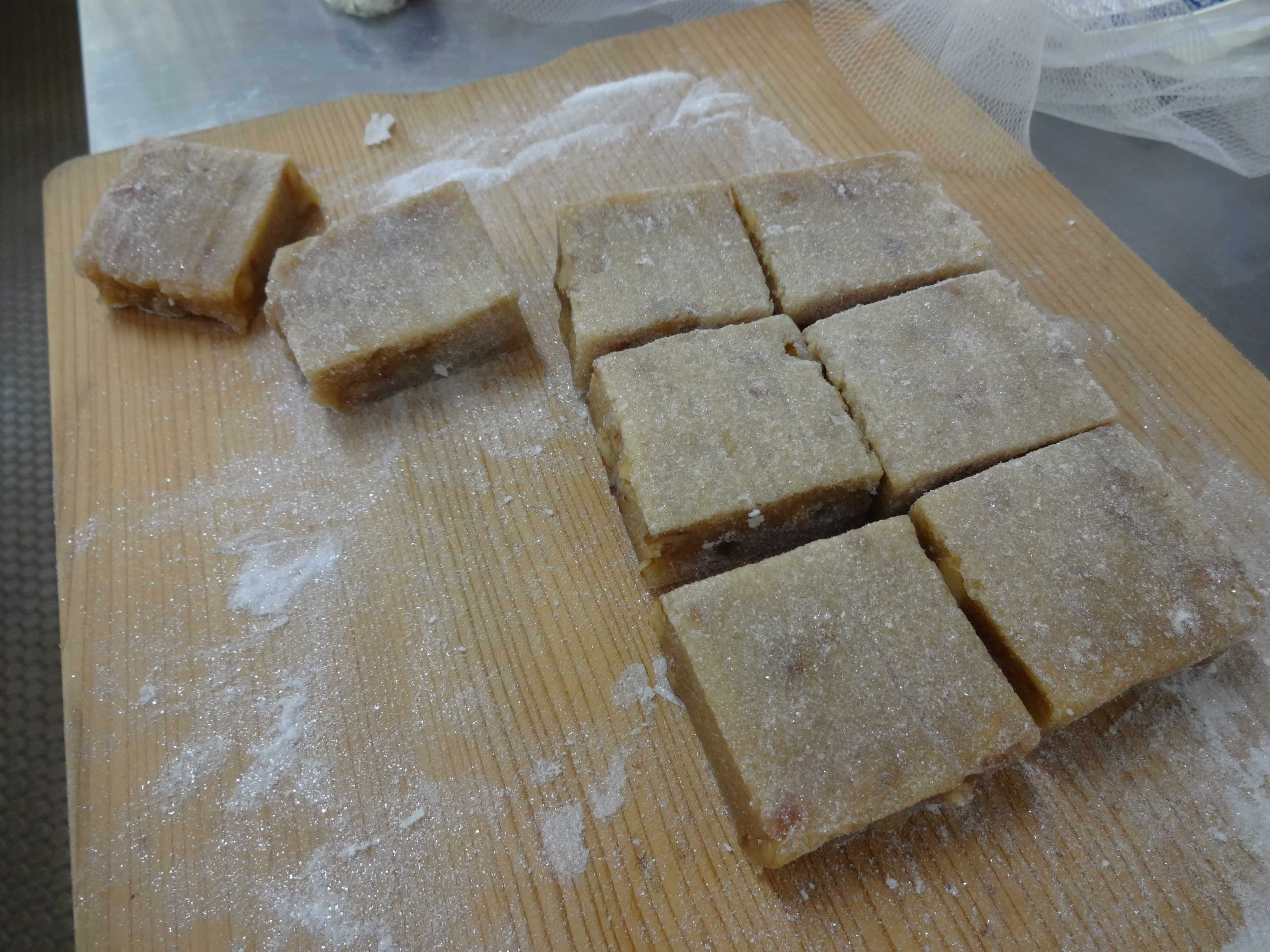 涼しげな「みずまんじゅう」と「クルミ入りゆべし」を作りました。 みずまんじゅうのあんは3種類(あずき・白・ずんだ)透き通ったあんがきれいです。 くるみゆべしももちもちしていておいしそうでした。 参加者の方で盛り上がり、今度はみなさんできのこのキッシュを作られるそうです。