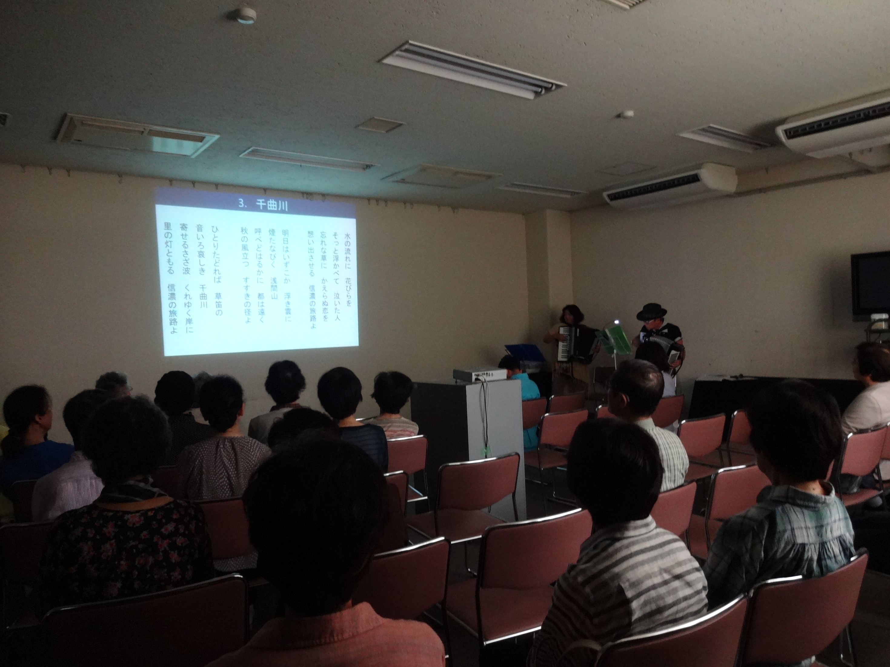 いつもたくさんの方に参加していただいているお楽しみ「歌声広場」です。 じょうずにうたわなくてもいいんです!(じょうずな方ばかりです) 楽しいのが一番!お帰りの道すがらにも思わず口ずさんでいただければ。