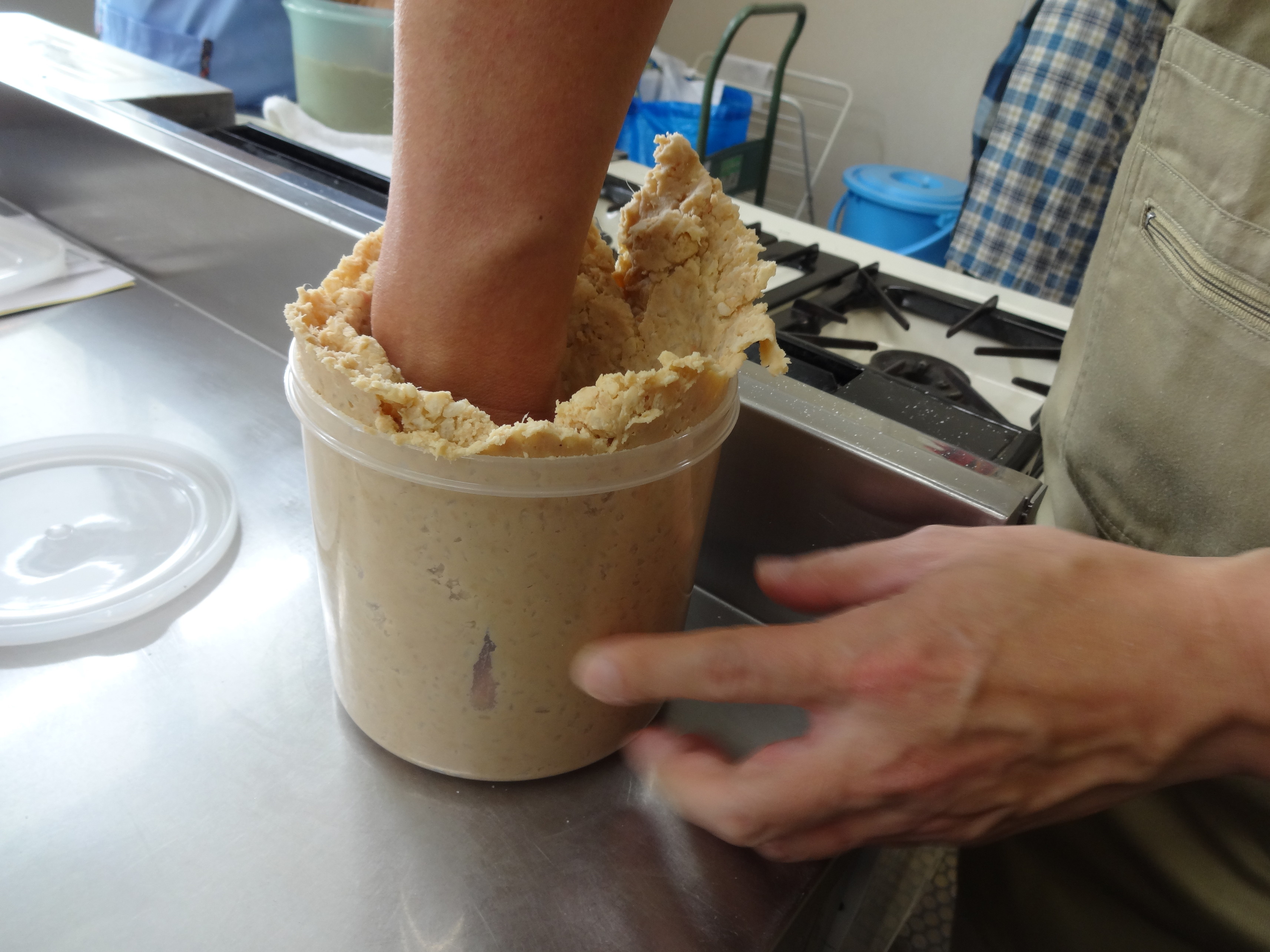 一人1㎏の味噌を小泉麴屋さんの手ほどきで 国産にこだわった材料を使用し、あっという間に仕込み完了です。 2018年6月7日 麹歩合10の高級味噌仕込み 開封は、2018年9月頃 美味しい味噌が出来上がるのが待ち遠しいですネ・・・