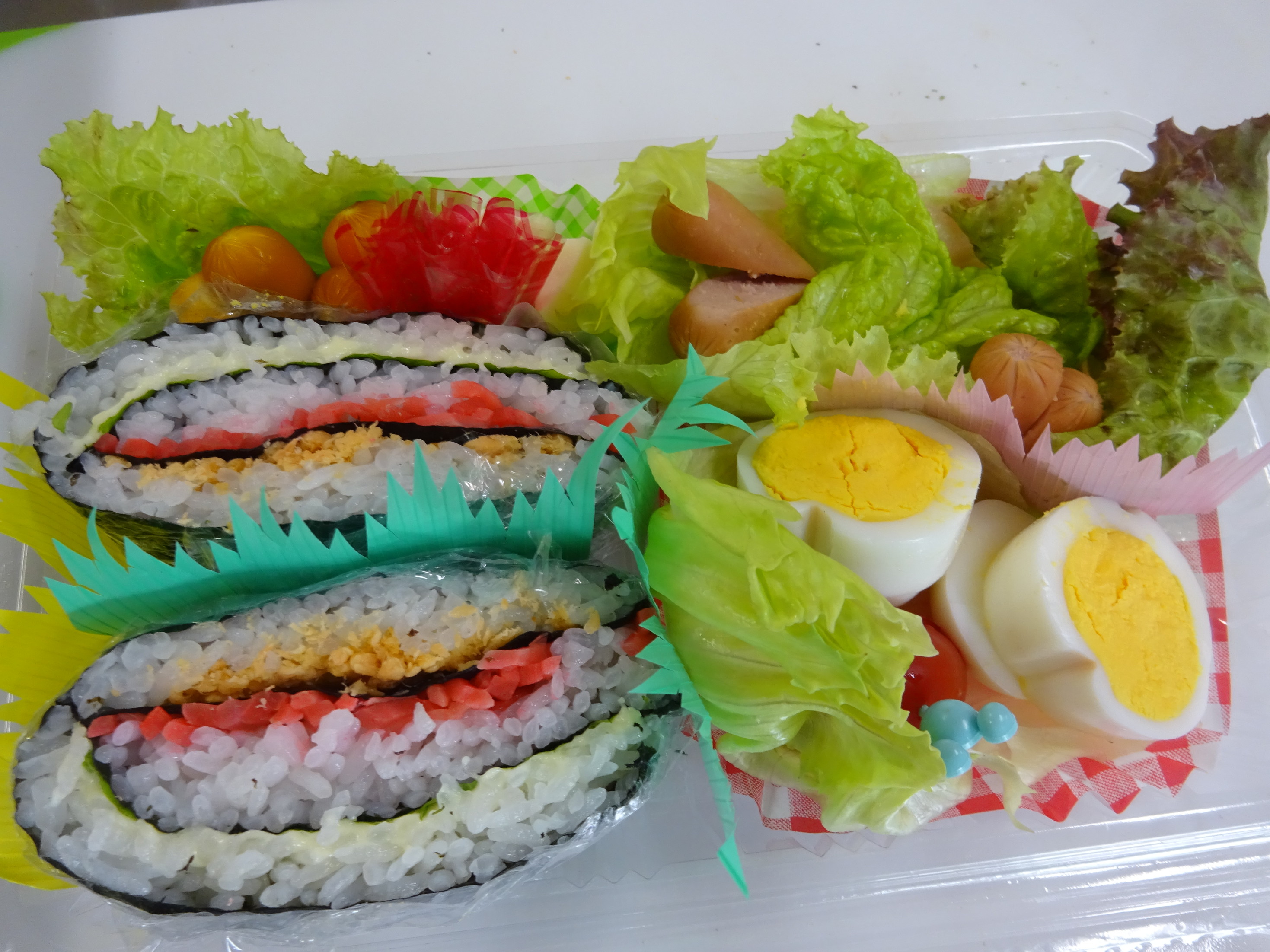 具材たっぷりのおにぎりサンド、 ゆで卵やプチトマトをハートの形にして可愛らしいサラダ作り あっという間に出来上がる簡単美味しいランチメニューを体験 できて、参加者のみなさまに喜ばれていました。