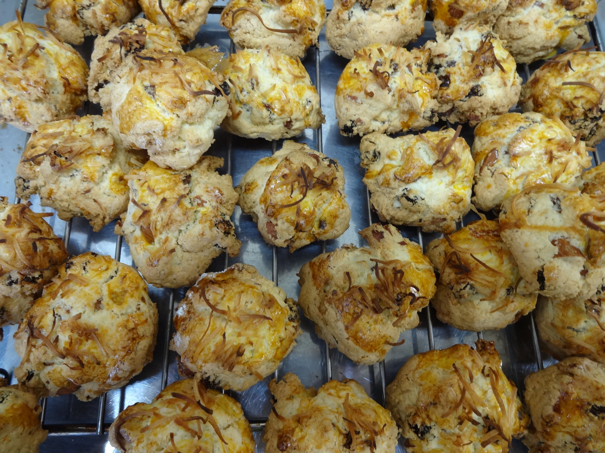 お兄さんやお姉さんたちと協力してロックケーキという焼菓子をつくりました。