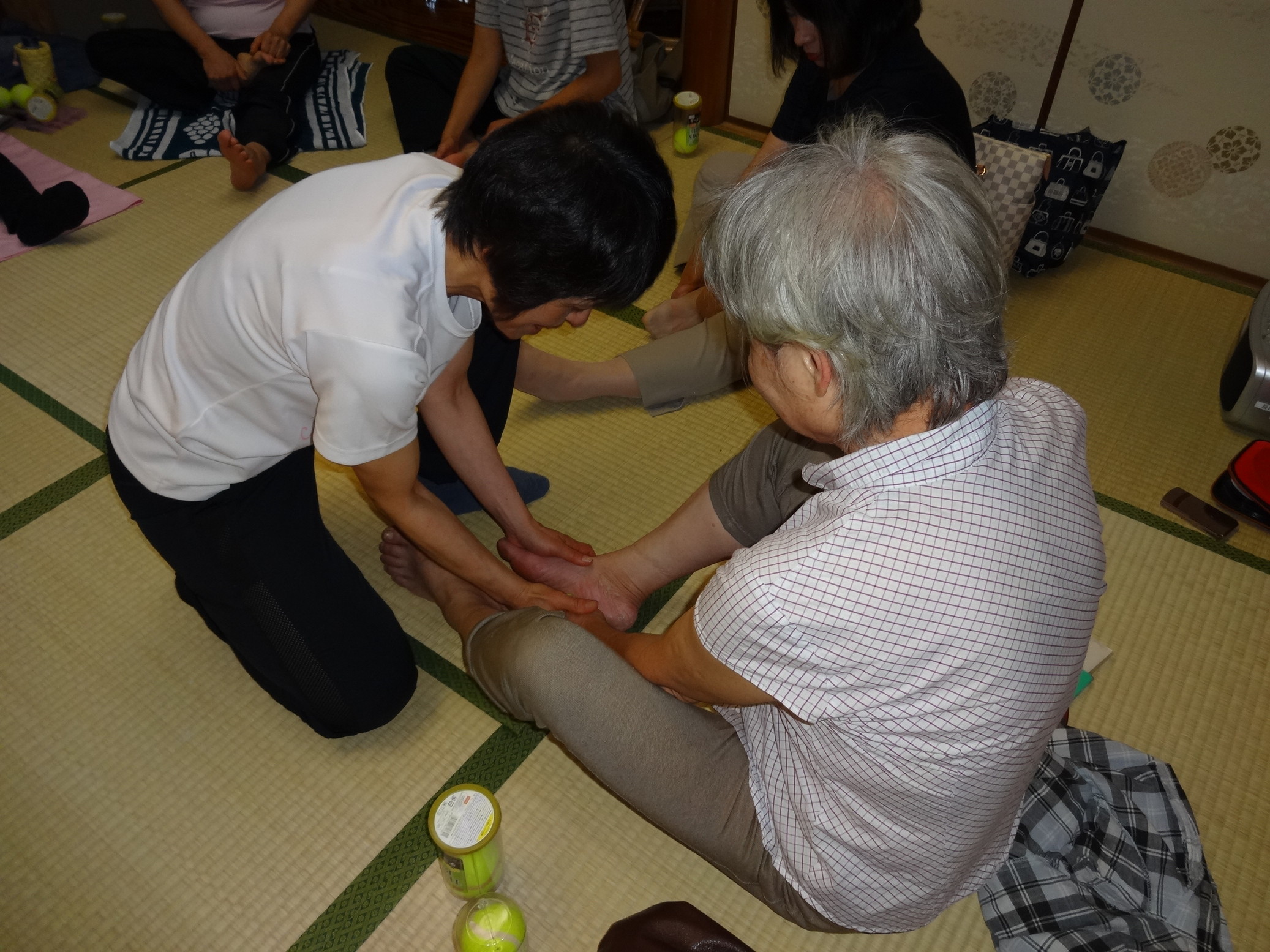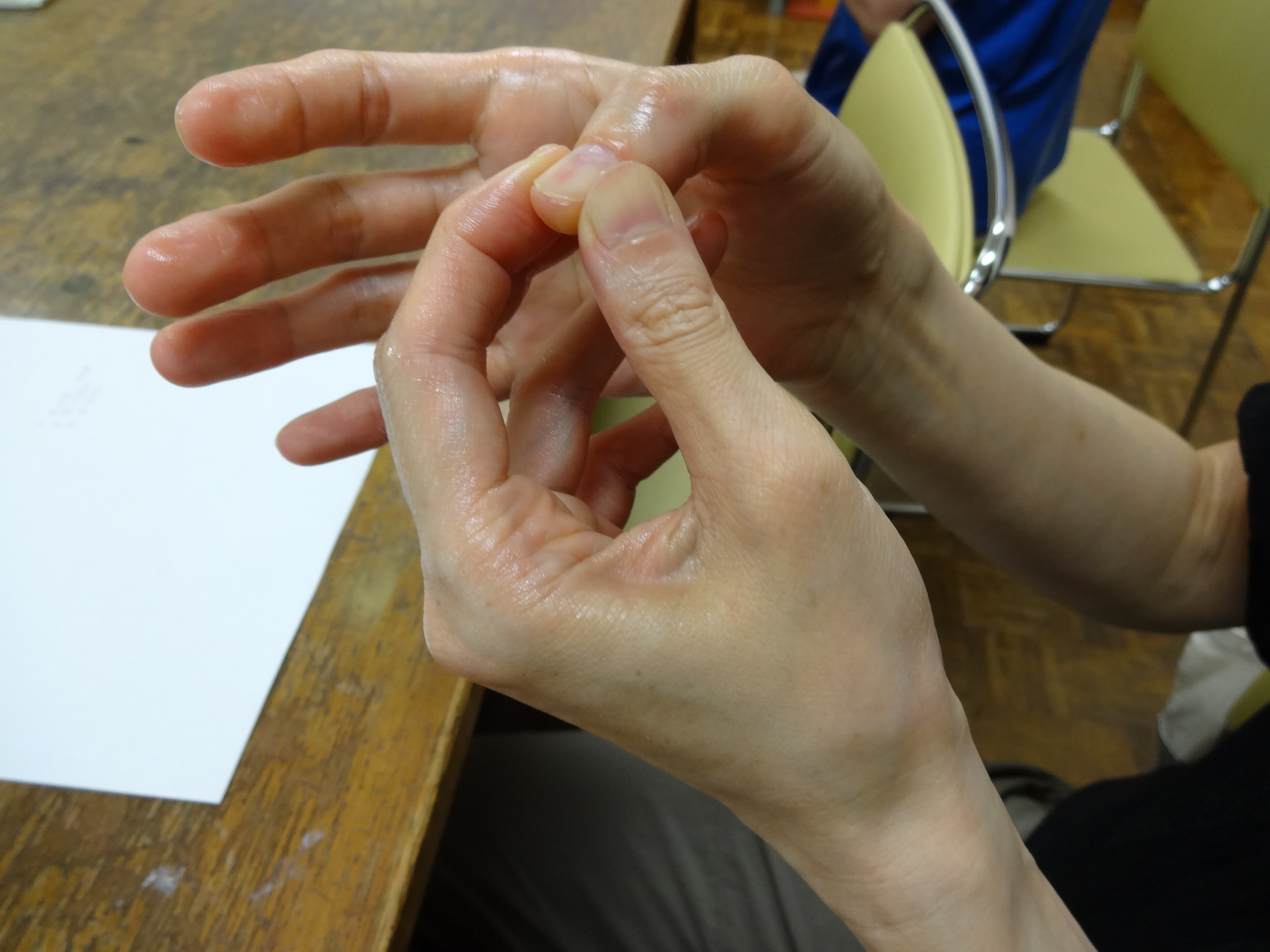 自分自身でのハンドマッサージは、とても気持ち良さそうでした。