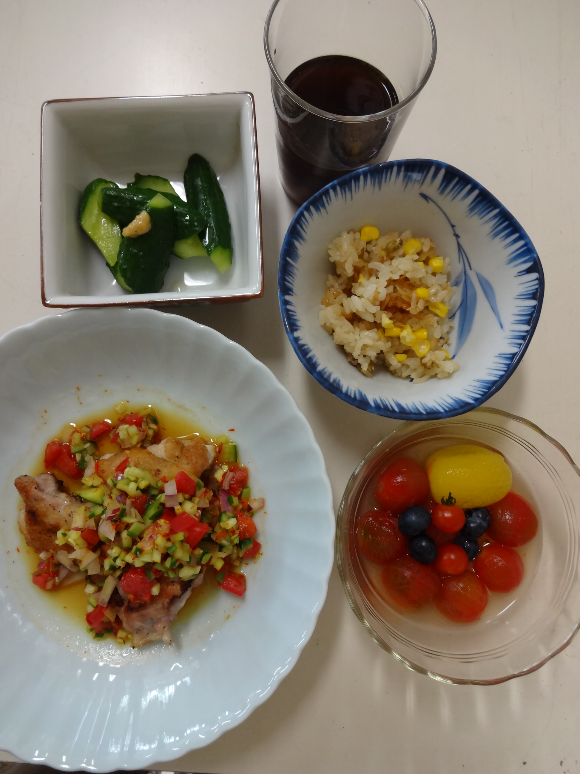 ♣二豆ご飯 ♣鶏肉の彩ソース