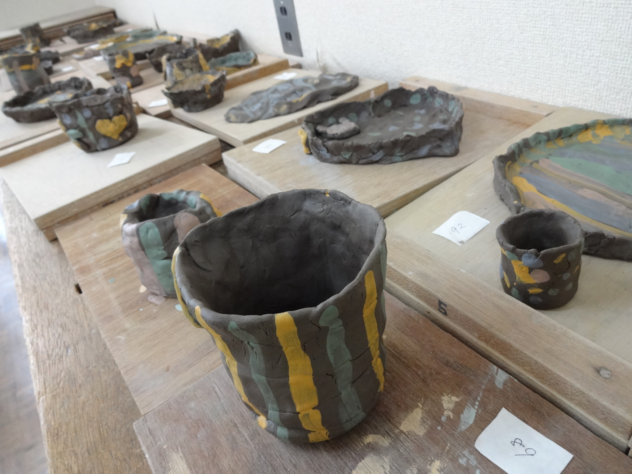 子どもたちが作った作品は、カップ・お皿・茶碗・動物・風物詩・球・クラフトと自由に仕上げていきました。