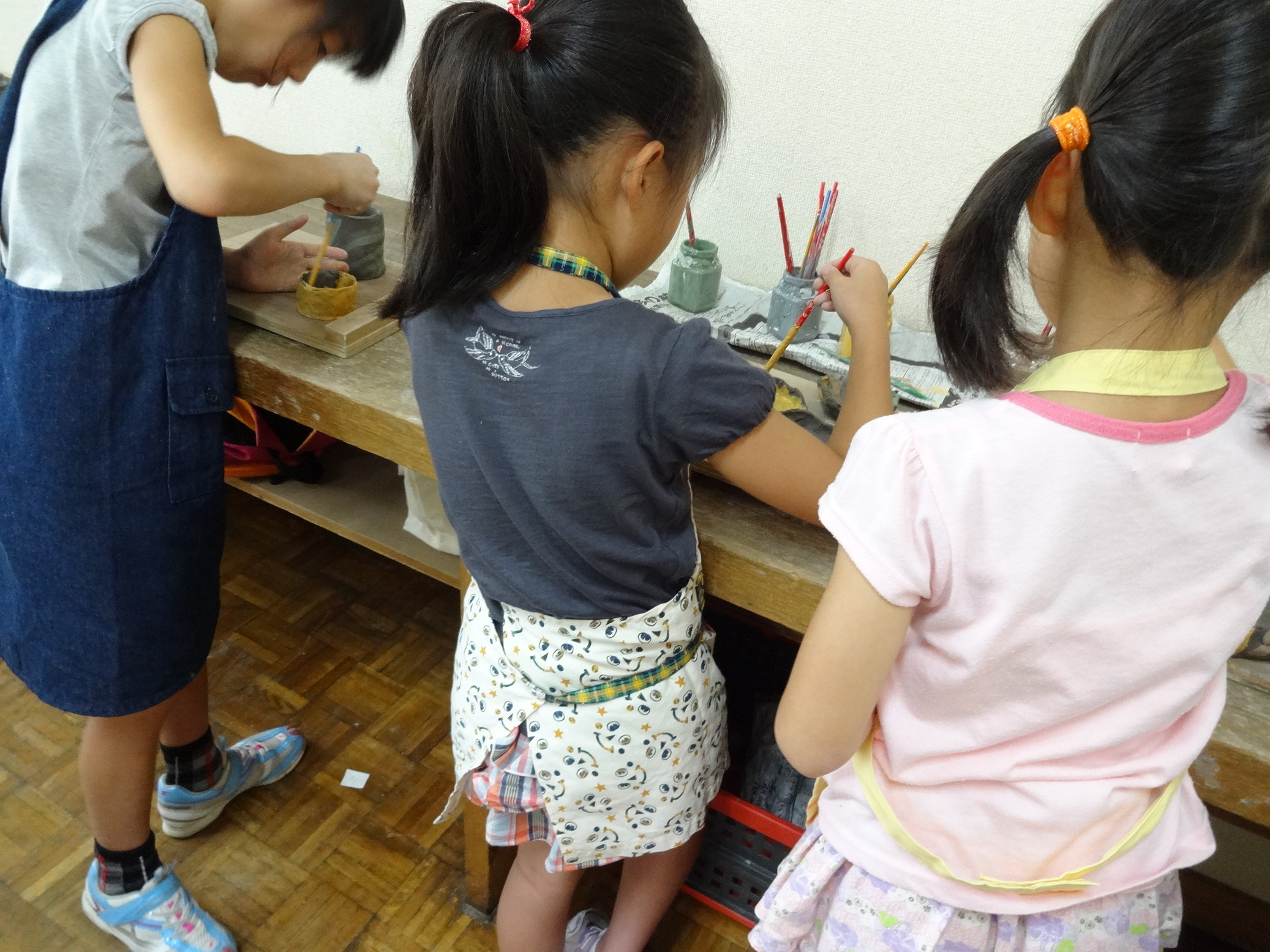 今回の講座は成形から色付まで子どもたちが行い焼成を先生にお願いする講座です。