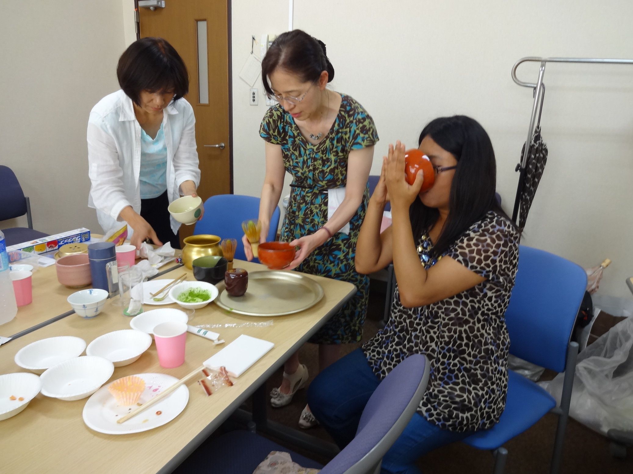 日本の方からの文化紹介は、茶道の道具一式を持ち込んで参加者全員にお茶を点ててふるまいました。