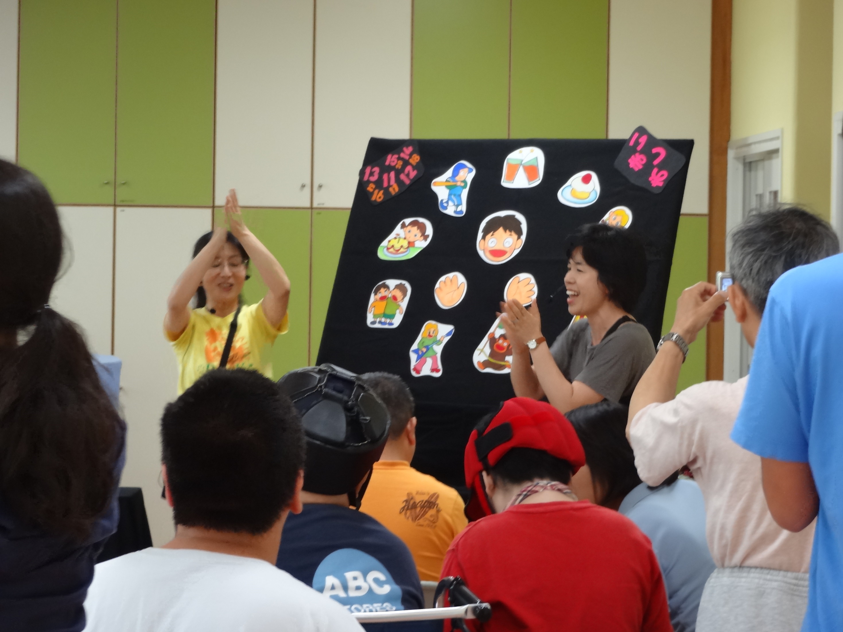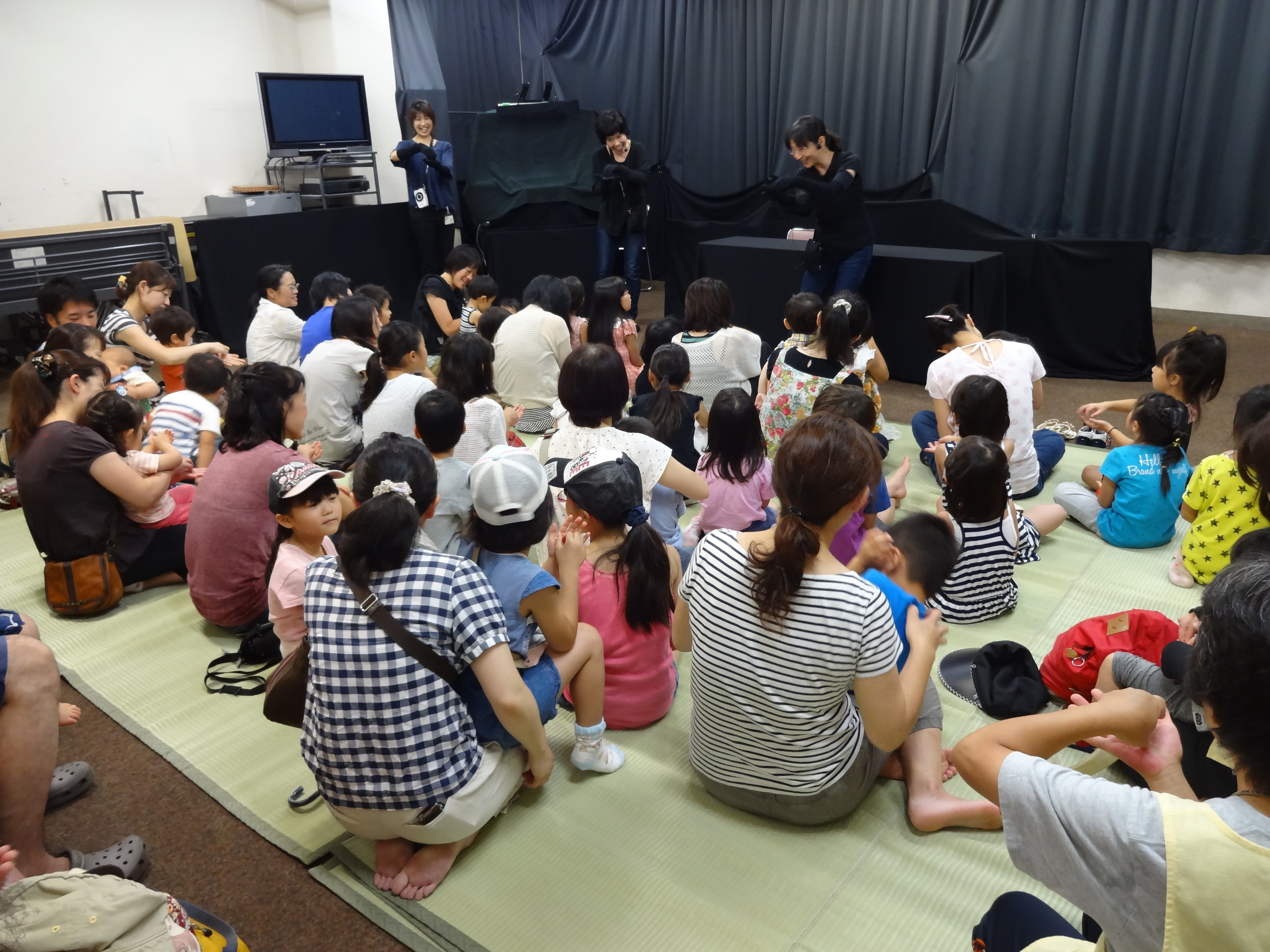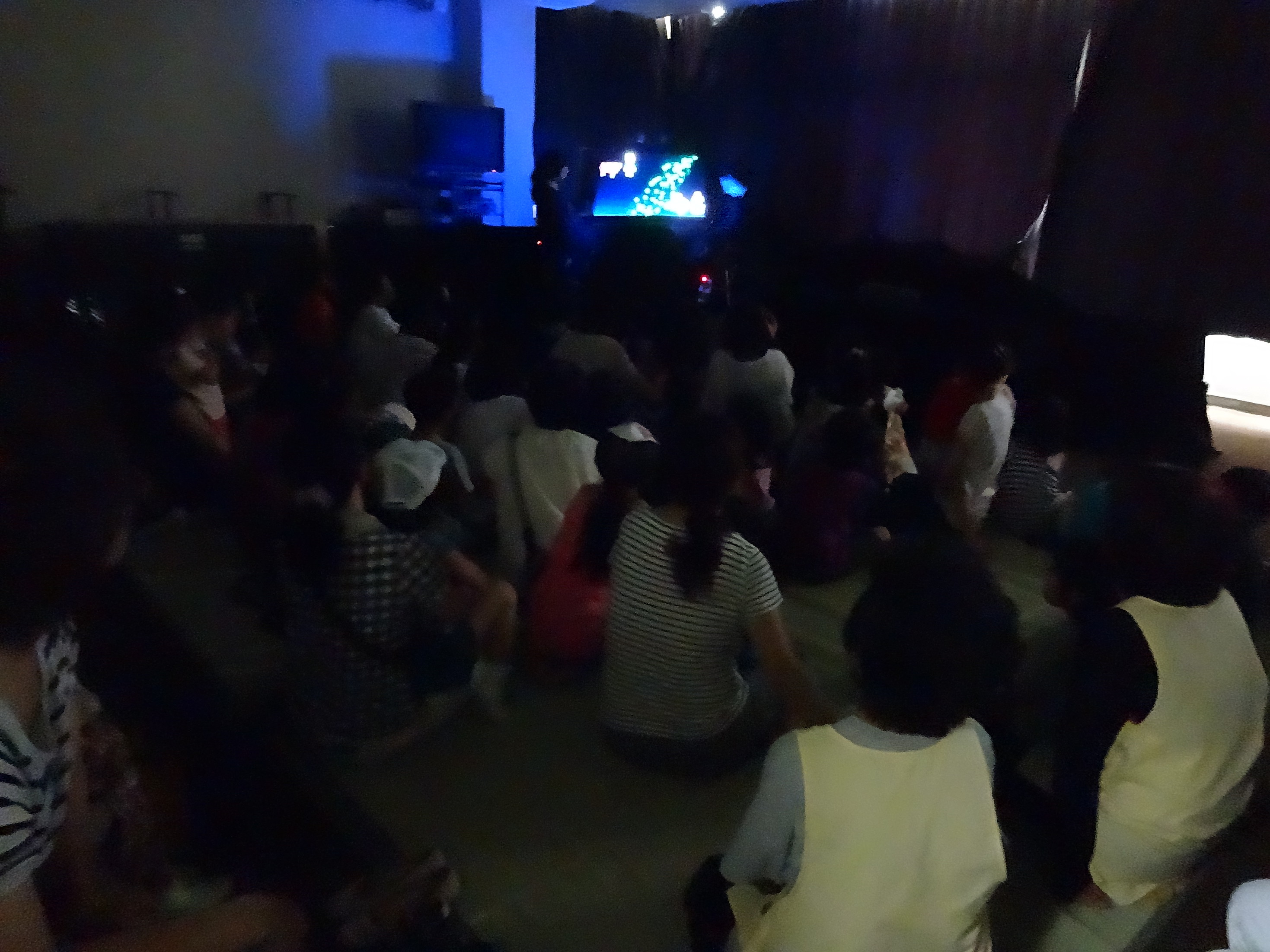 急に暑くなってきましたが、今日はたくさんの人が集まってくれました。 暗くしたお部屋の中で絵が光る。。。興味しんしんで子どもたちは見ていました。 楽しんでもらえたかしら?