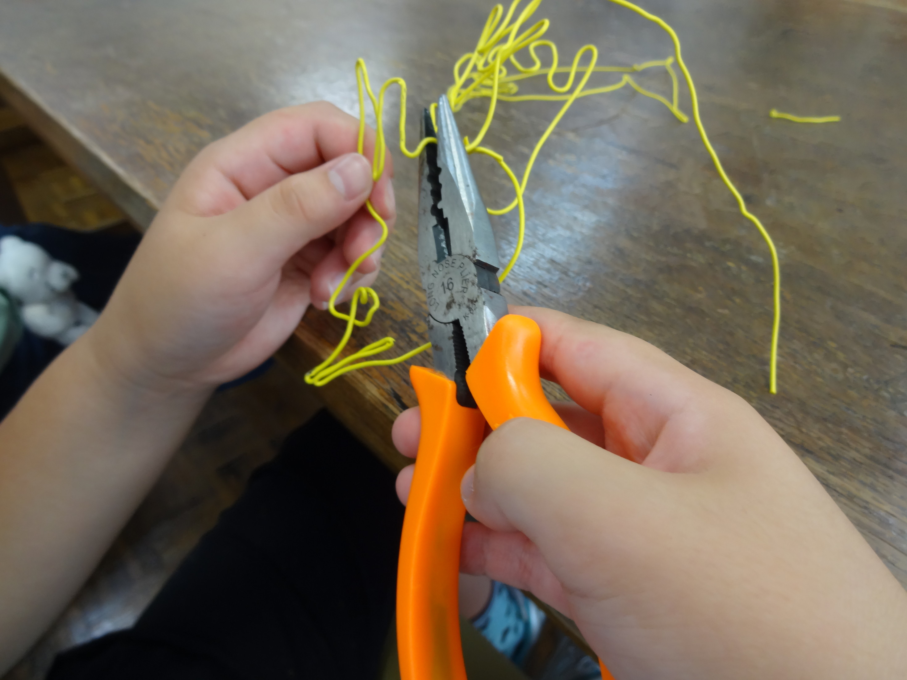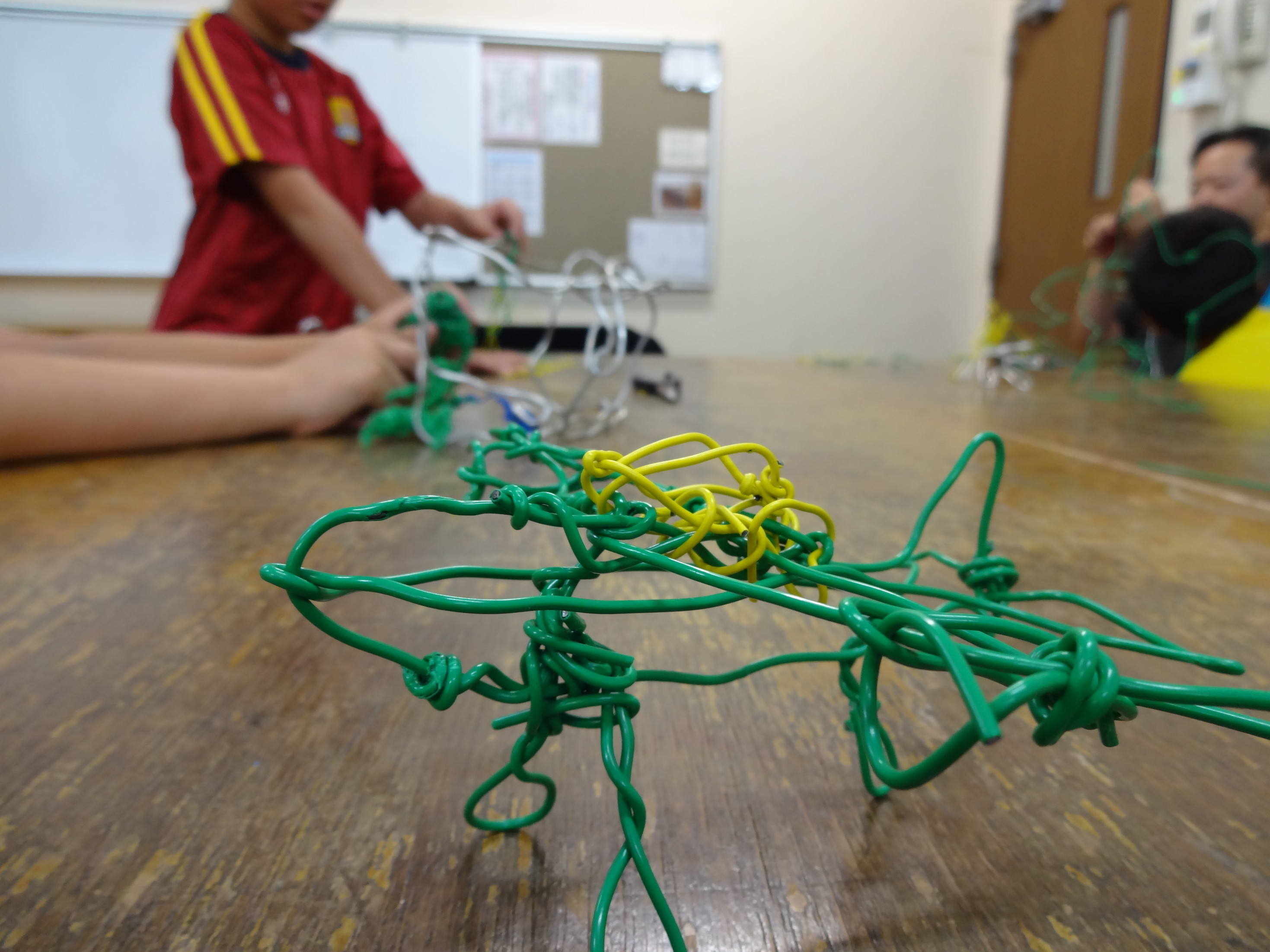 針金を切ったり、曲げたりしながら形を整えていきます。 なんに見えるかな?