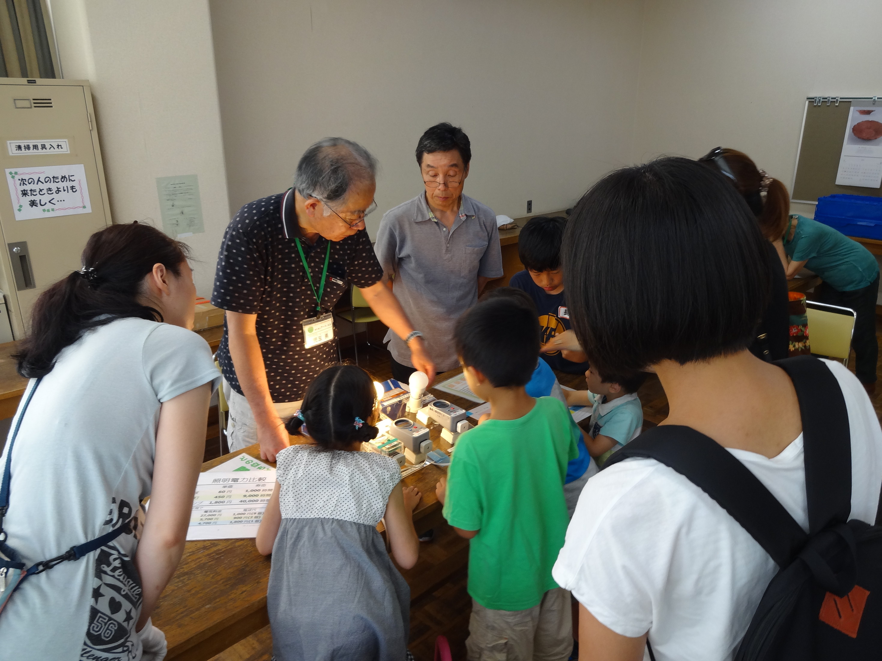 省エネの実験をしながら地球温暖化を学びました。 1日目:人力発電体験・電球消費電力の比較 2日目:マリンタワーの工作