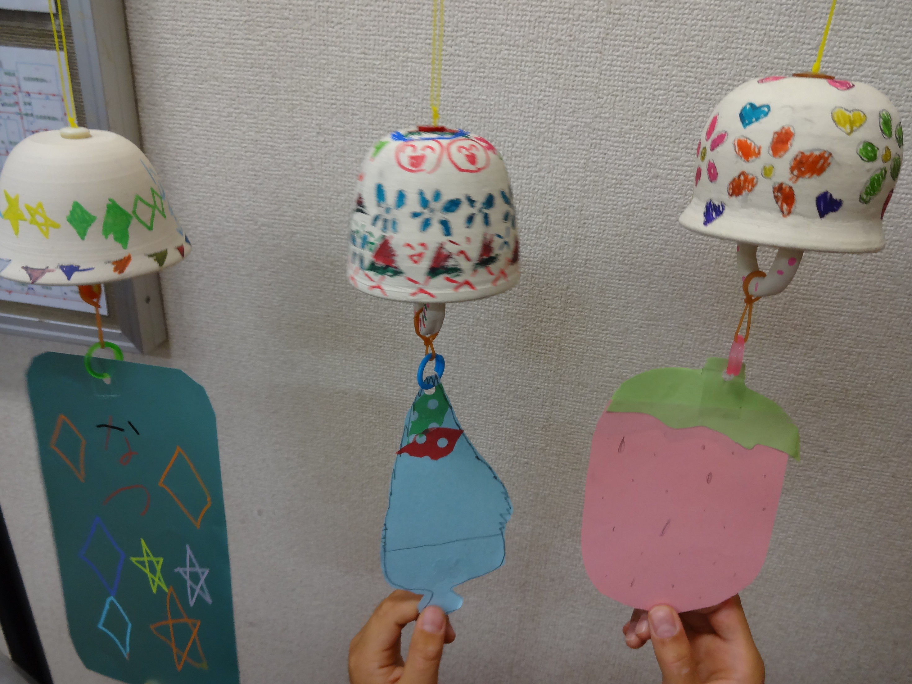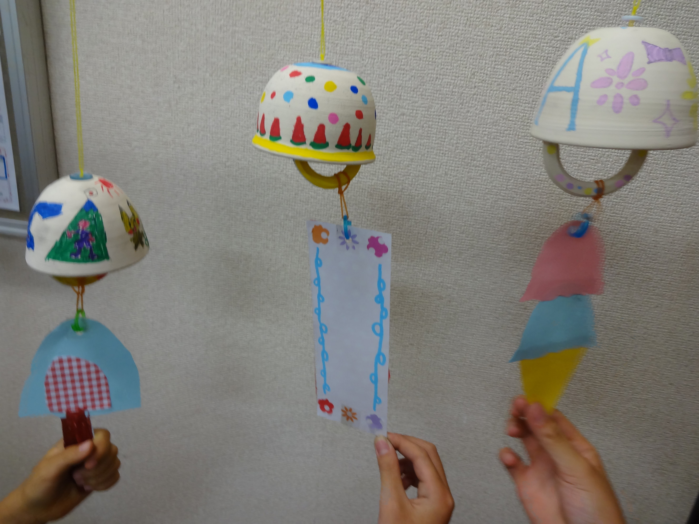 カラフルでかわいく涼しげな風鈴が出来上がりました。 チリン、チリ~ンときれいな音がしますよ。