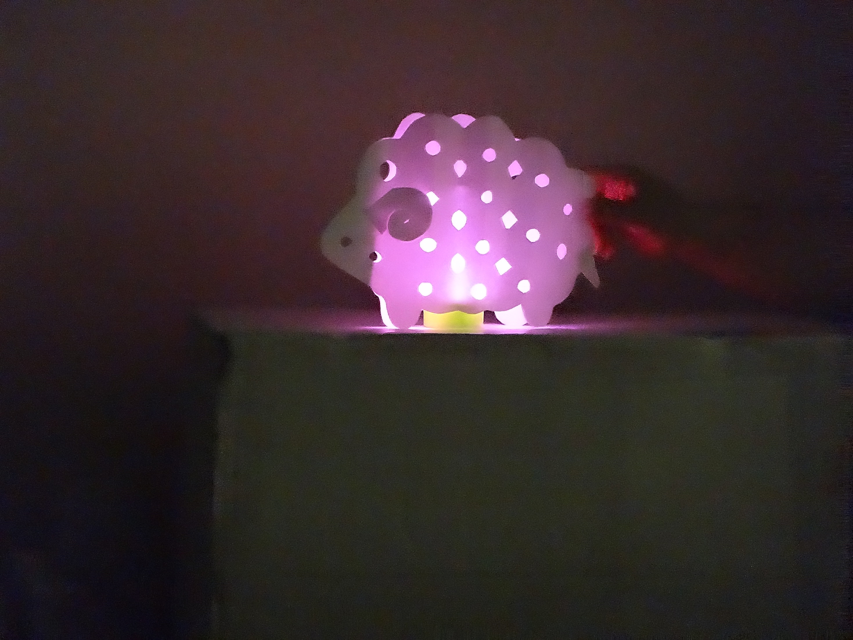 紙を切り抜き中に7色に変わるLEDを入れて暗い所でみるととっても素敵です。 怪獣やお城、ハートのかわいいのも作りました。 おばけもいました。。。