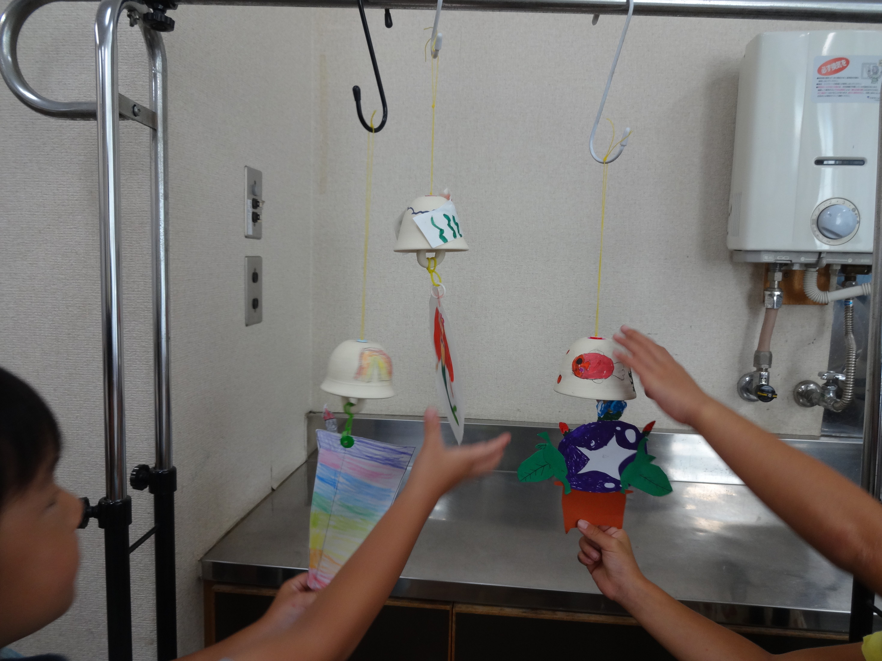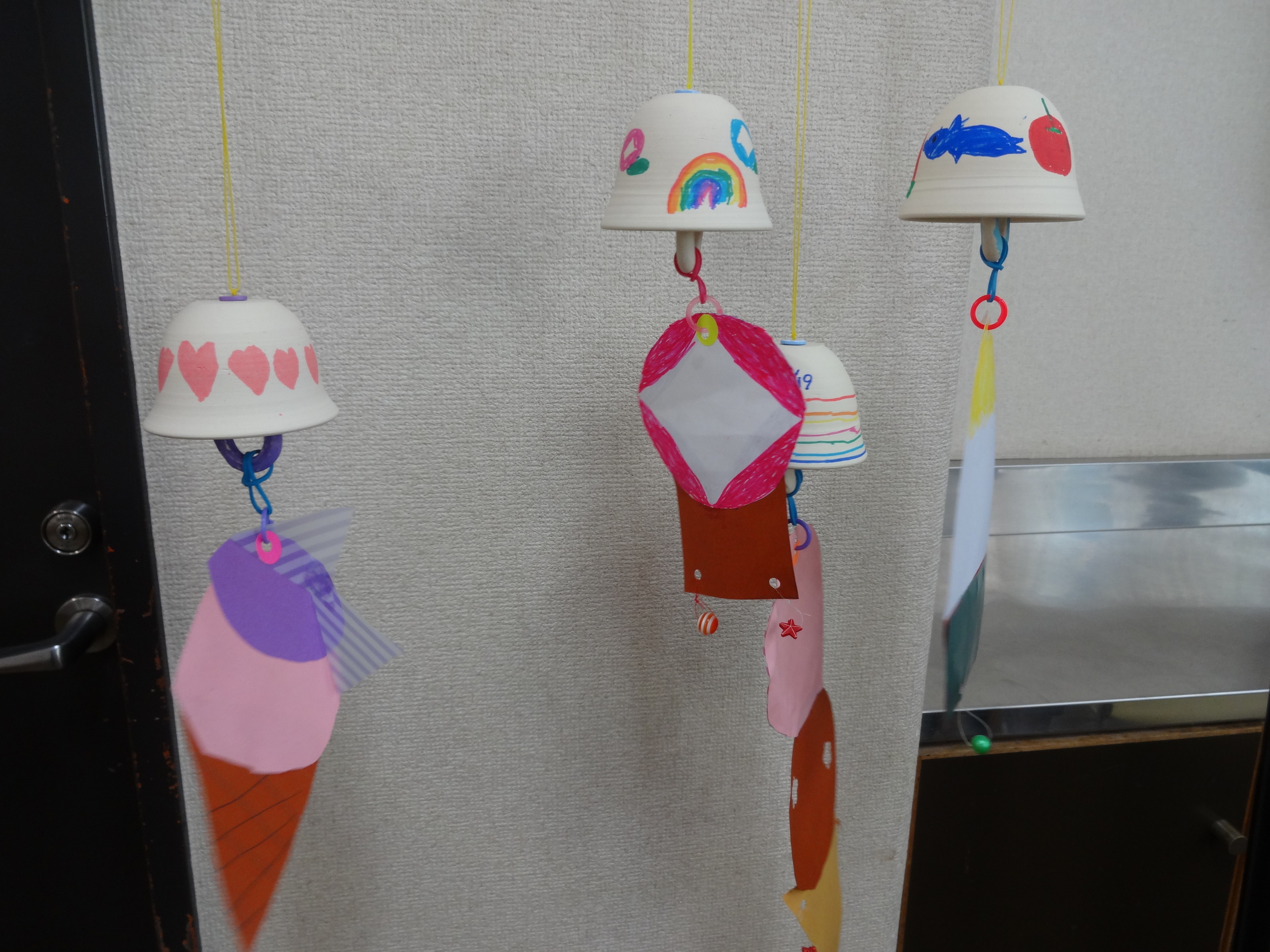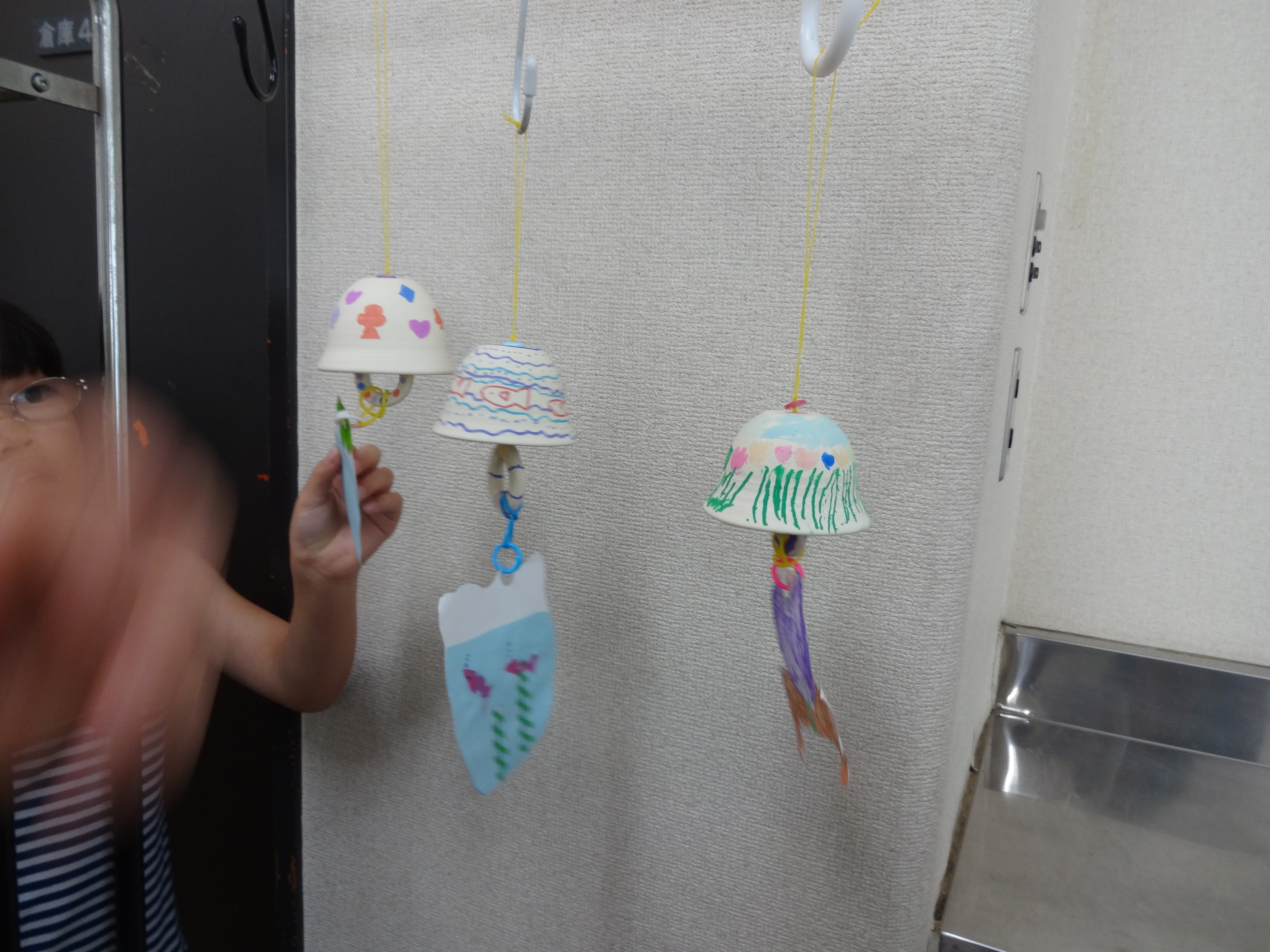 たくさんの応募がありましたので、2回から3回講座に増やし参加していただきました。 希望時間に参加できなかったお子様もいましたが、みなさん都合をつけてきてくれました。 ありがとうございます。 風鈴に様々な絵を書いて世界にたった一つのオリジナルの風鈴ができあがりました。 風鈴の音色で涼しさを感じてくださいね。