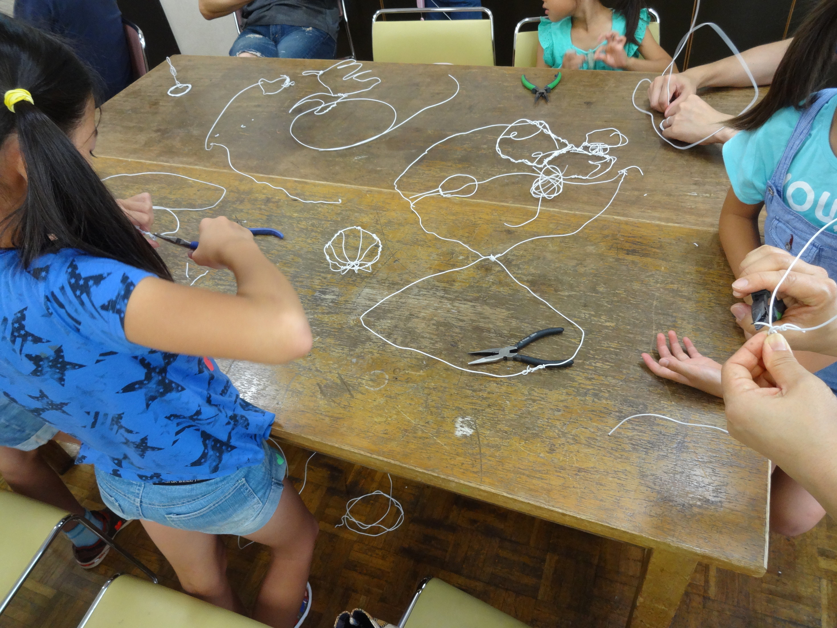 たくさんの応募の中から、抽選で20人のお子様に参加していただきました。 針金を使って、曲げたり伸ばしたりして好きな形に作りました。
