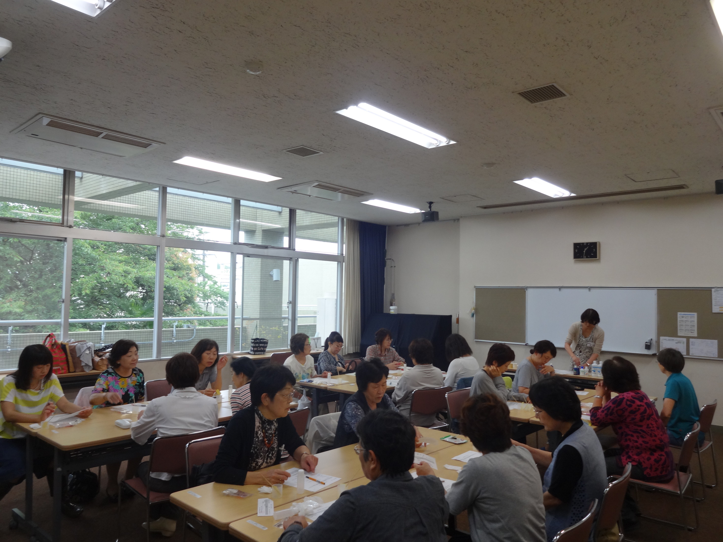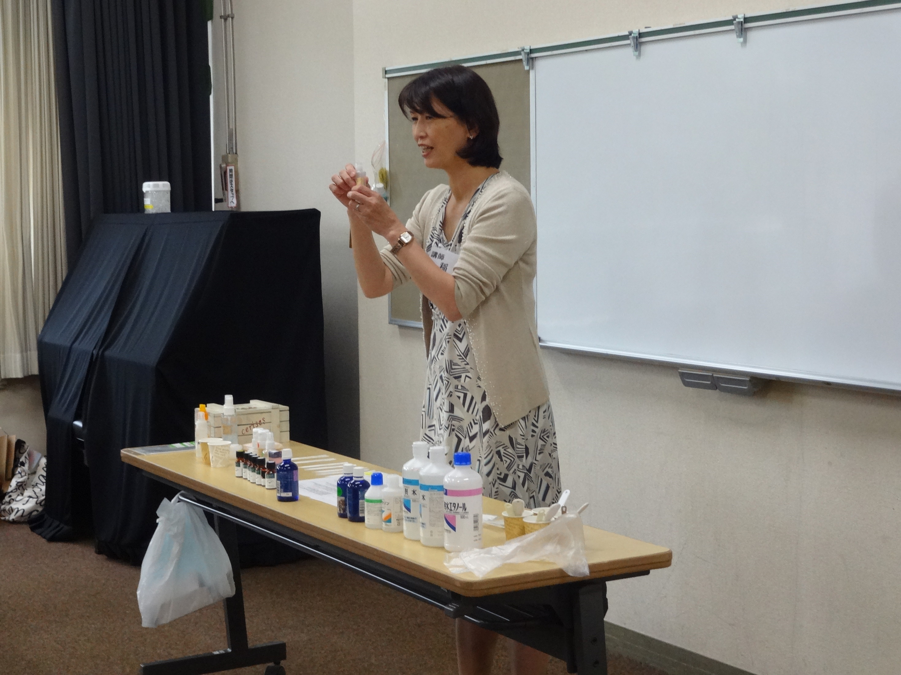 本日はアロマを使った 夏のコスメを手作りしました。 本格的に暑くなり始めた今、日焼け後の火照った肌につけていただく ジェルを作りました。 ジェルはよく伸びるので使いやすく、香りもさわやかにできあがりました。 みなさん、満足して帰られました。 一部の皆様は、もう一度講師をお迎えして保湿クリームを作られるそうです。