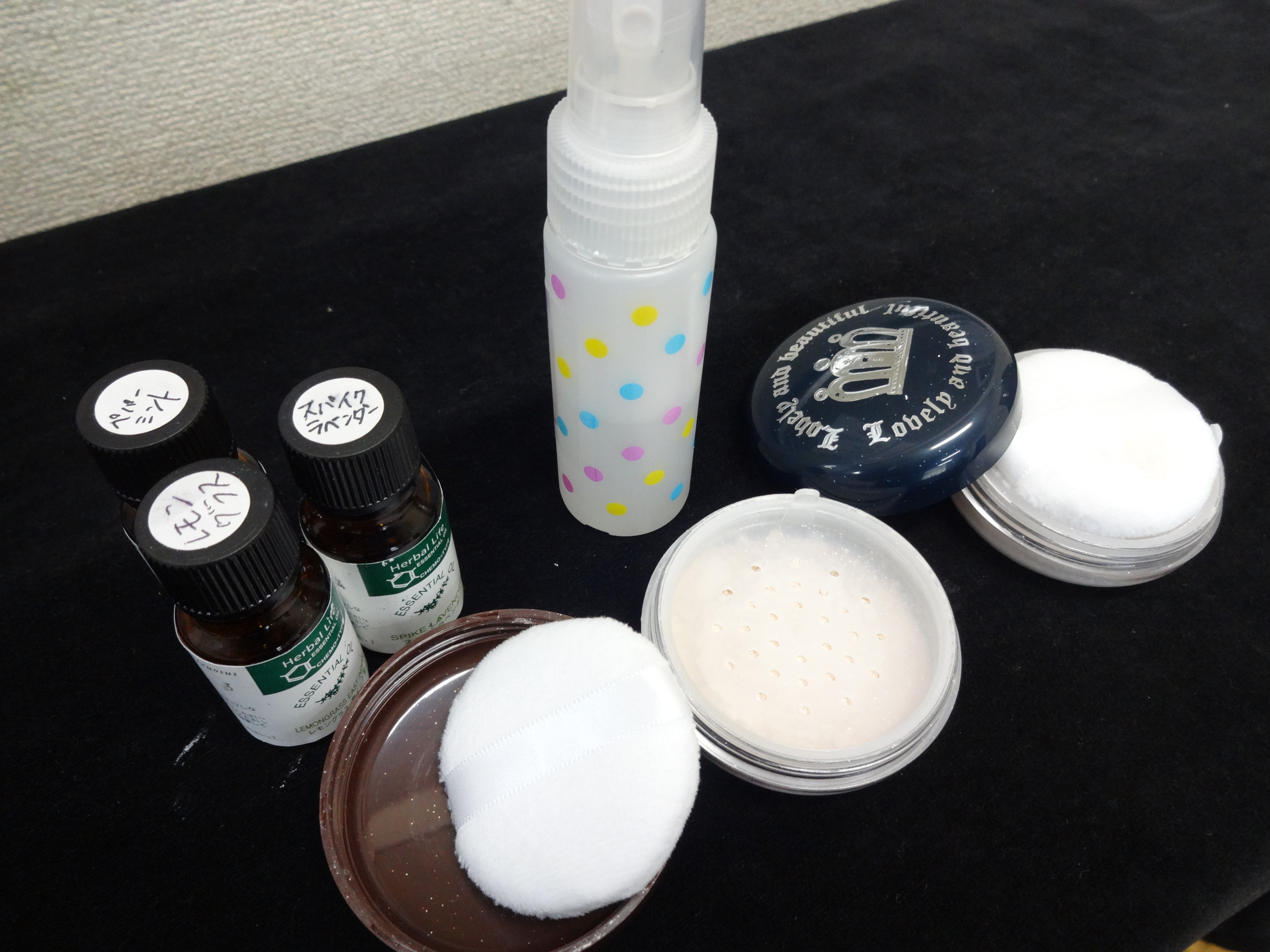 1回目にボディスプレー、2回目にボディパウダーを作りました。 スプレーは、体だけでなく空間にも使って夏の暑苦しさから気分転換できます。 ボディパウダーは、あせも予防、汗をかいた足の裏などにも使ってさわやかに過ごしていただけます。 キラキラが入っておしゃれ気分で1UP!