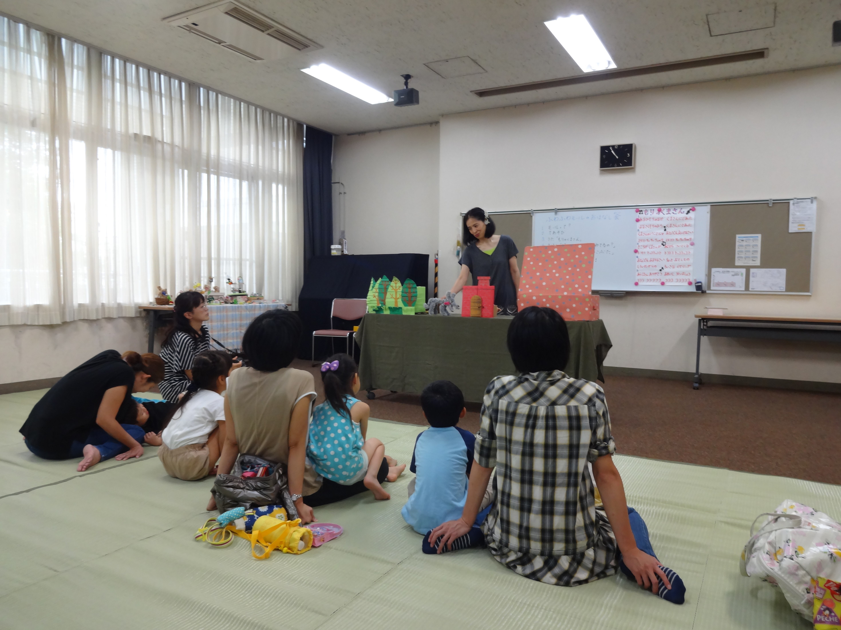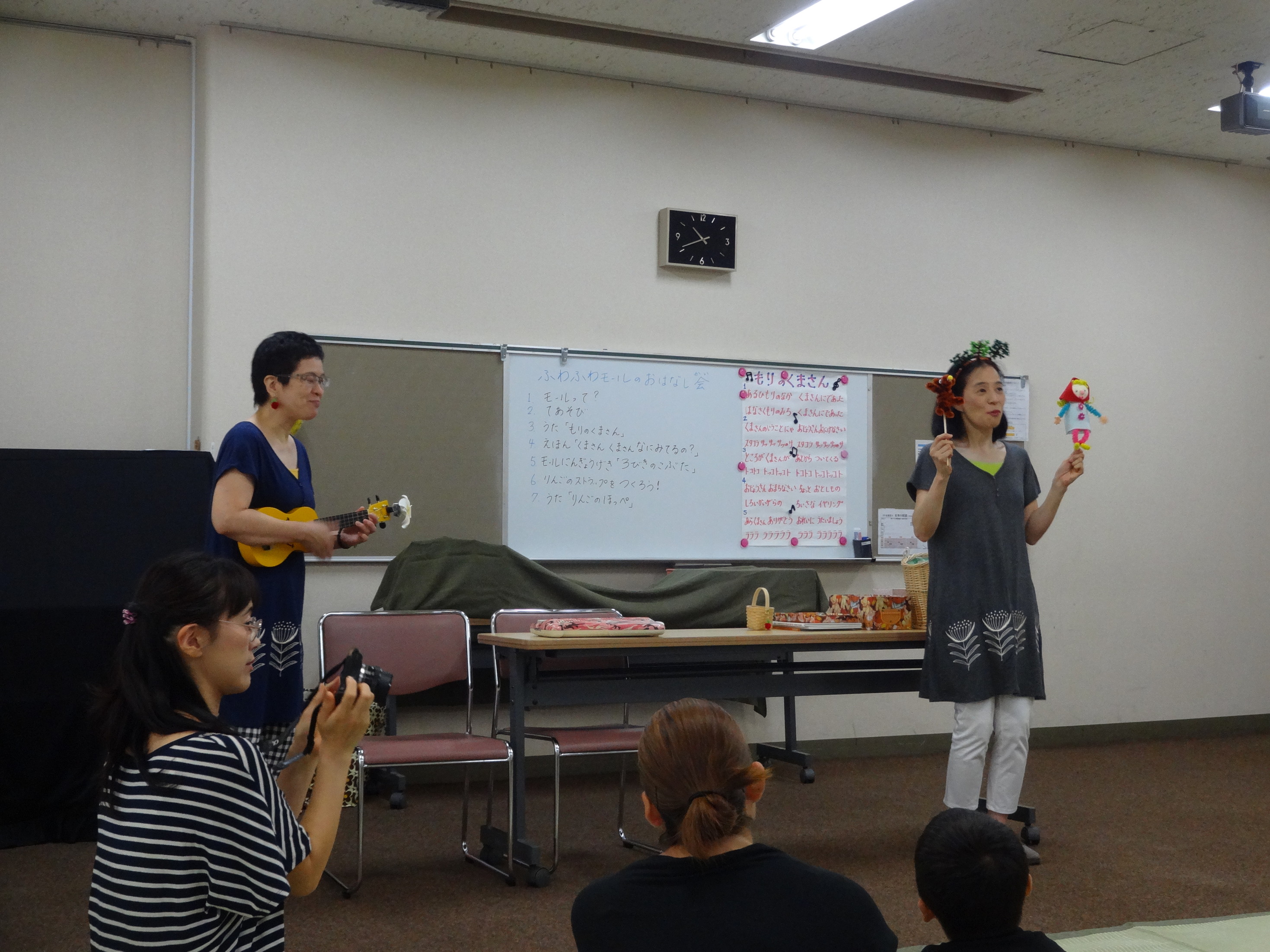 モールをくるくると丸めたり折り曲げたり まるでモールが魔法にかかったように 作品が出来上がります。 めがね、おひげ、くまさん・・・ 絵本から飛び出した動物たち・・・ こどもたちは釘づけ・・ 歌や物語を聞きながらモール人形の動きをみていました。 そして、最後には親子で「りんごのストラップ」づくりをしました。