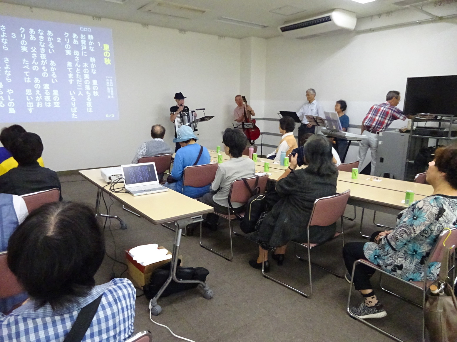 エンターテイメントバンドによる 歌声広場 ギターやアコーディオン フルートやオカリナの演奏で 懐かしい曲をたくさん歌いました。 次回は来年1月に開催します。