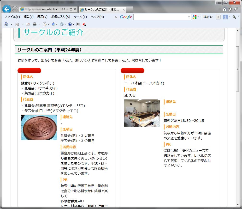 長津田地区センターをご利用いただいているサークルの紹介を、7月1日(日)からホームページに掲載いたしました。