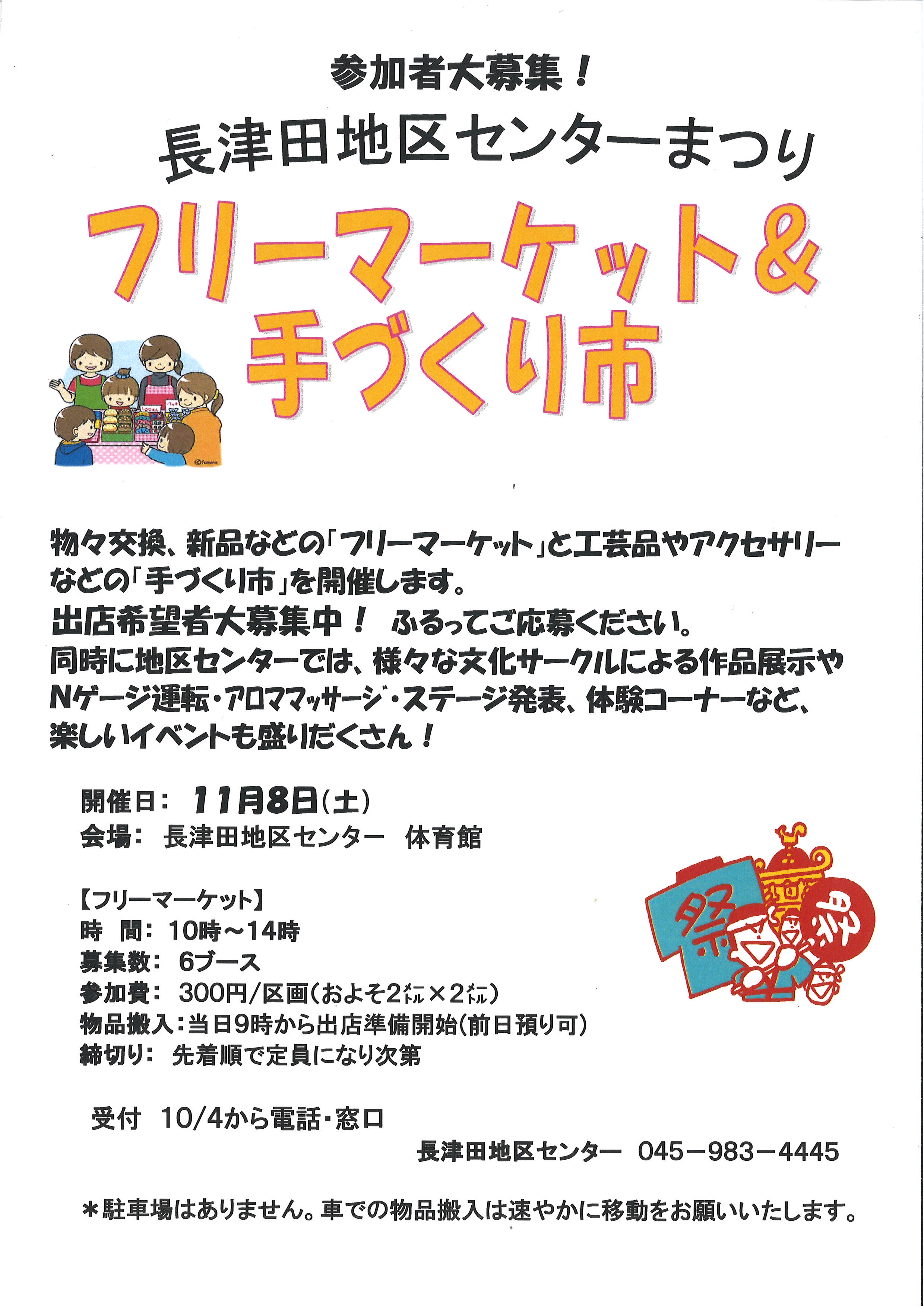 ◆11/8(土)長津田地区センターまつり「フリーマーケット&手づくり市」参加者大募集!