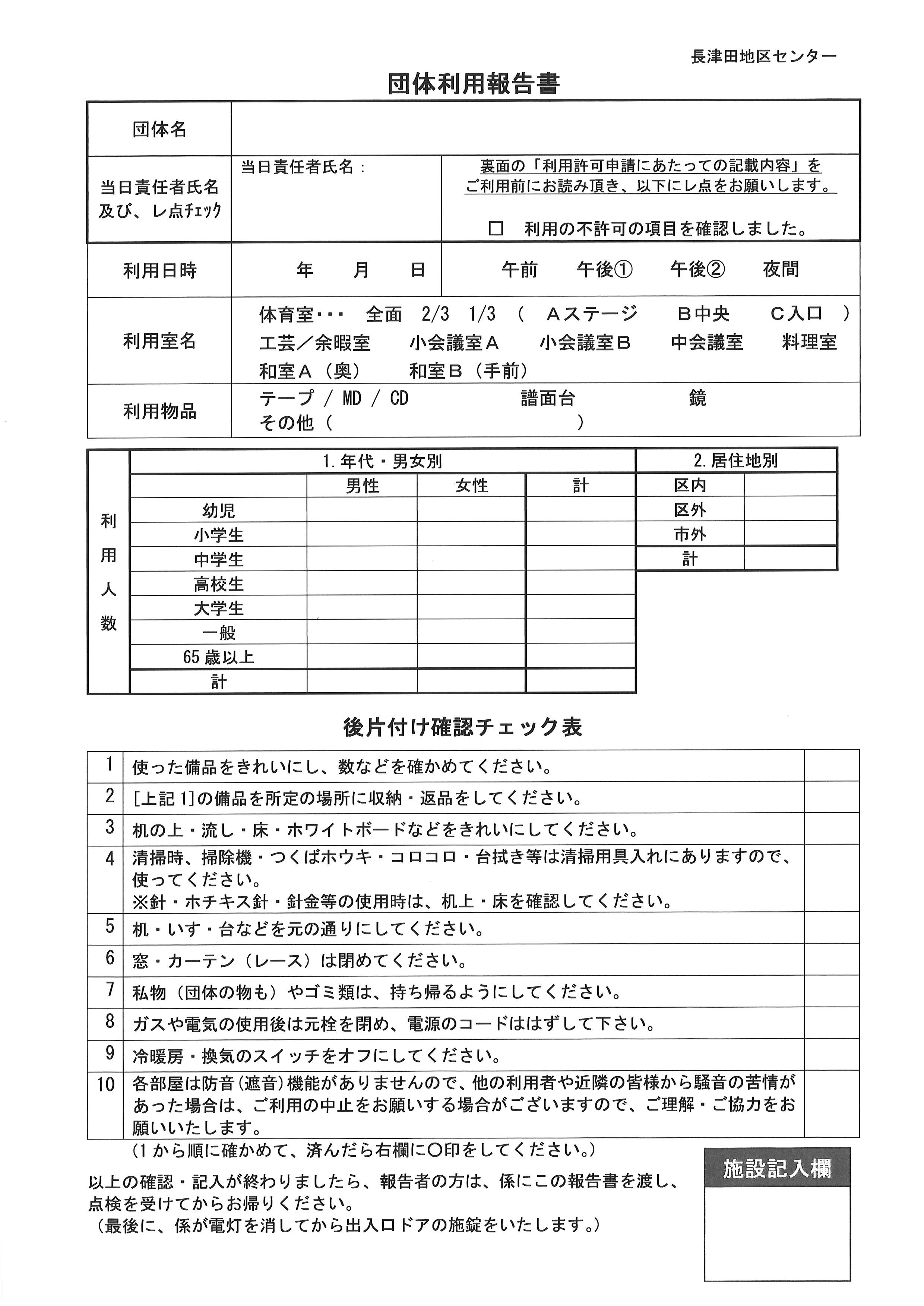 団体利用報告書[表面]