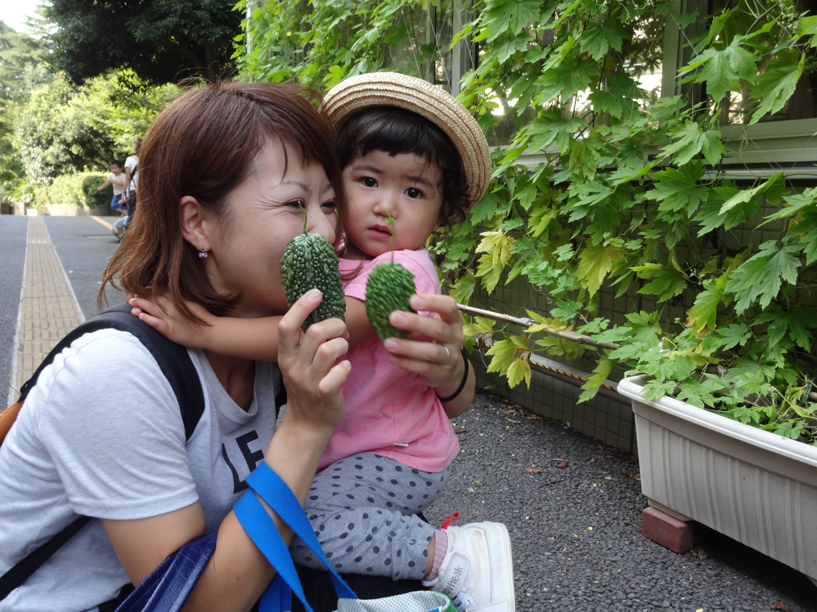 本日収穫のゴーヤは、小さなお子様におすそわけ!