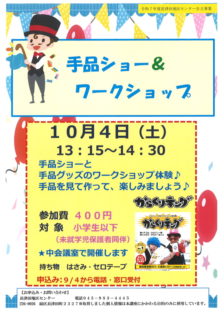 ♠10/4(土)手品ショー&ワークショップを開催します♣