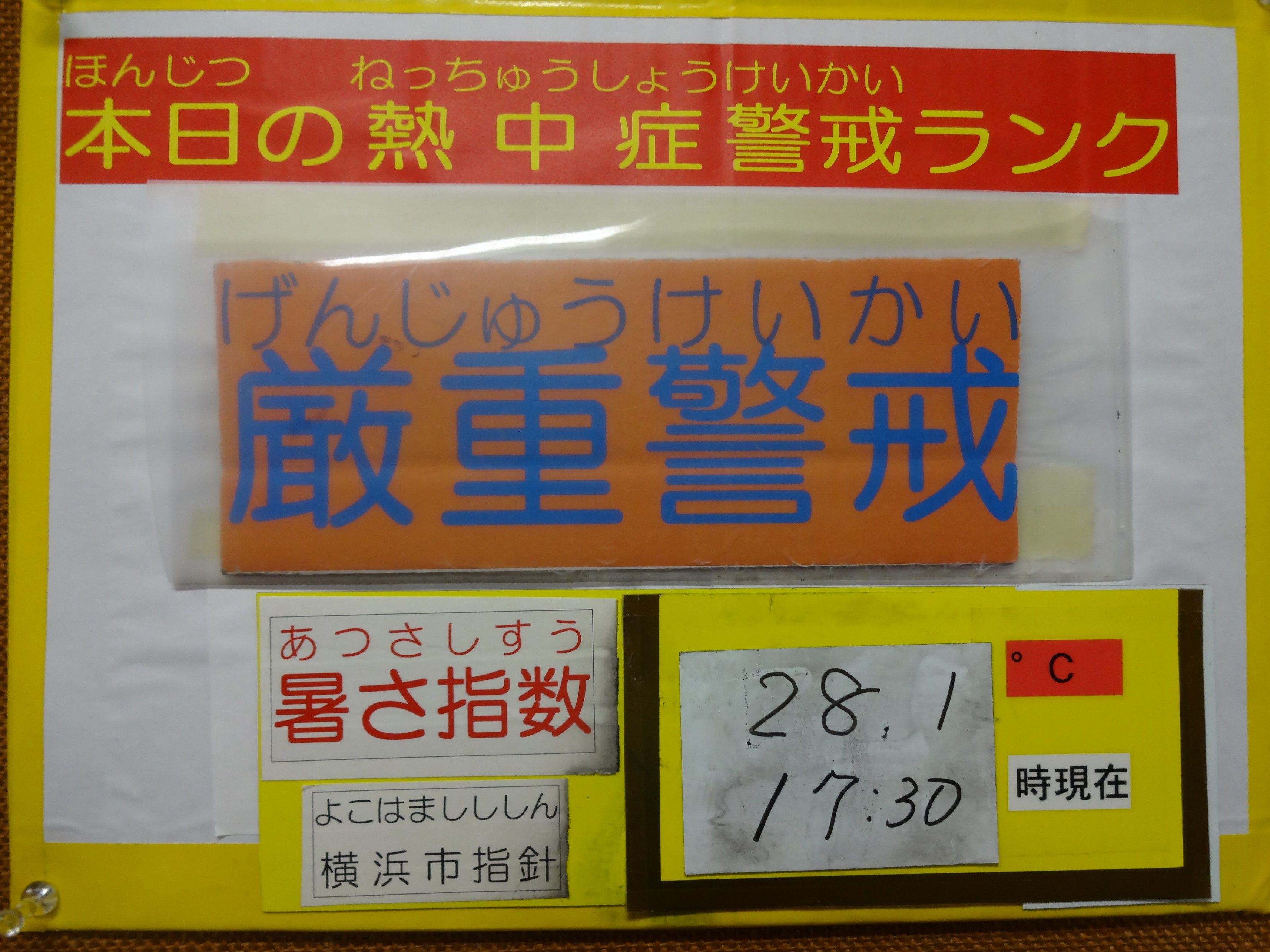 今年も、暑さ指数を体育館入り口近くに貼り出しています。