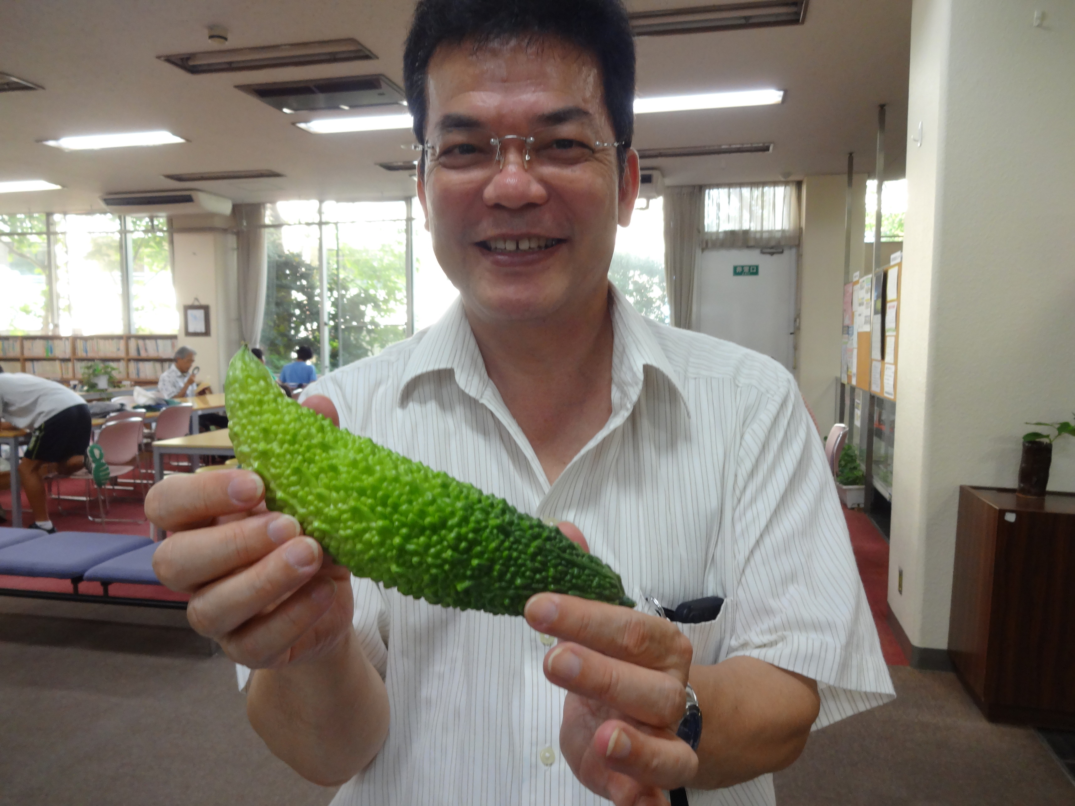 収穫したゴーヤをご来館の皆様に