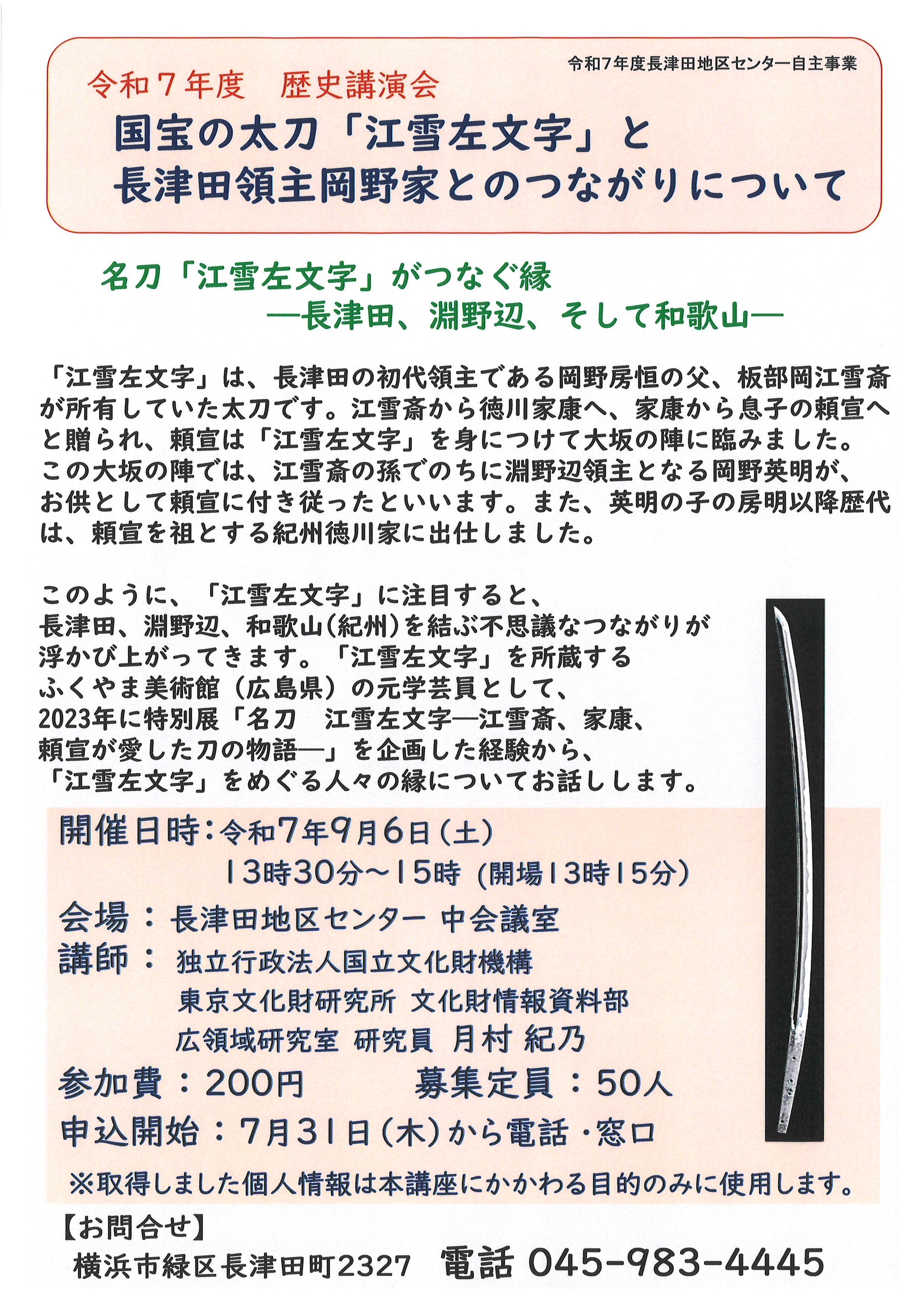 名刀「江雪左文字」がつなぐ縁― 長津田、淵野辺、そして和歌山 ―