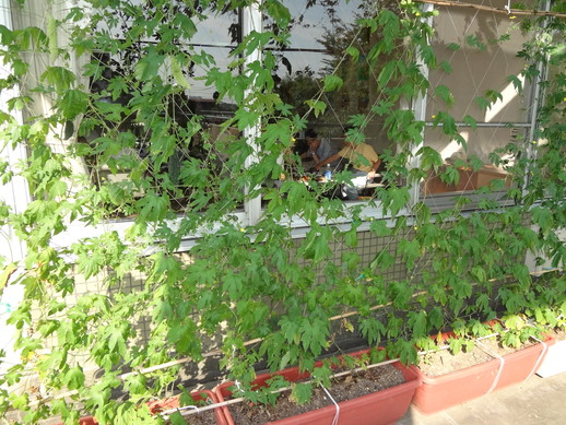 緑のカーテンが順調に作られ、その上ゴーヤの実がいくつもなっているのを見るのは楽しいですね。