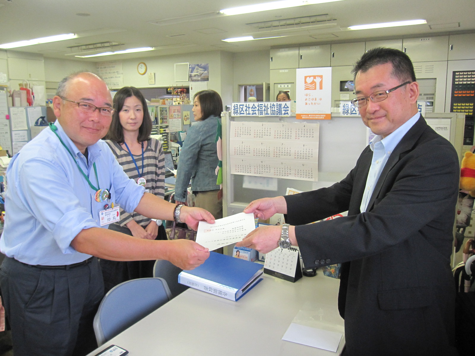 去る7月2日に、緑区の社会福祉活動の支援金として、緑区社会福祉協議会に些少の額を寄付させて頂きました。