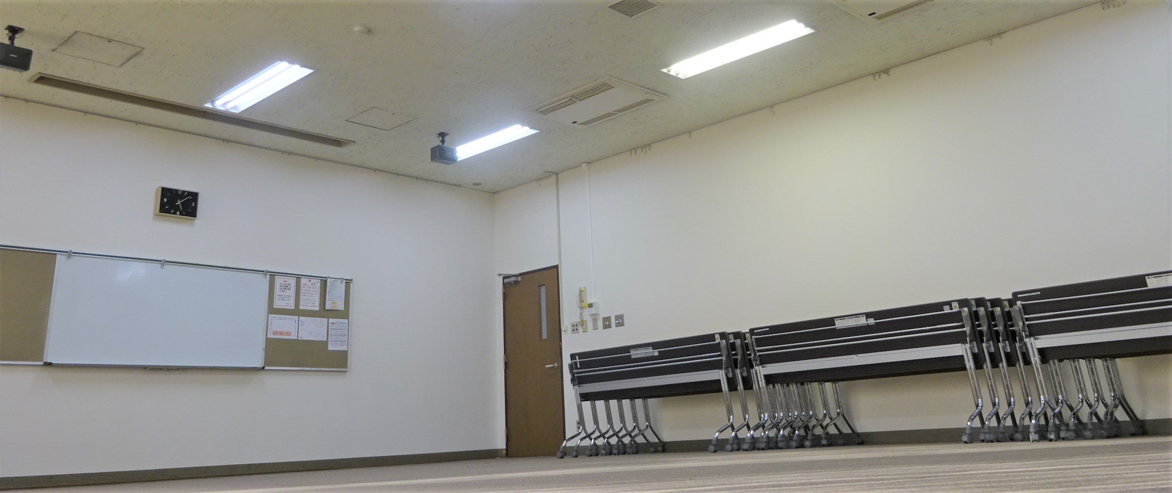 古く汚れてしまっていた中会議室の壁紙を、先日全面にわたり新しい壁紙に貼り換えました。