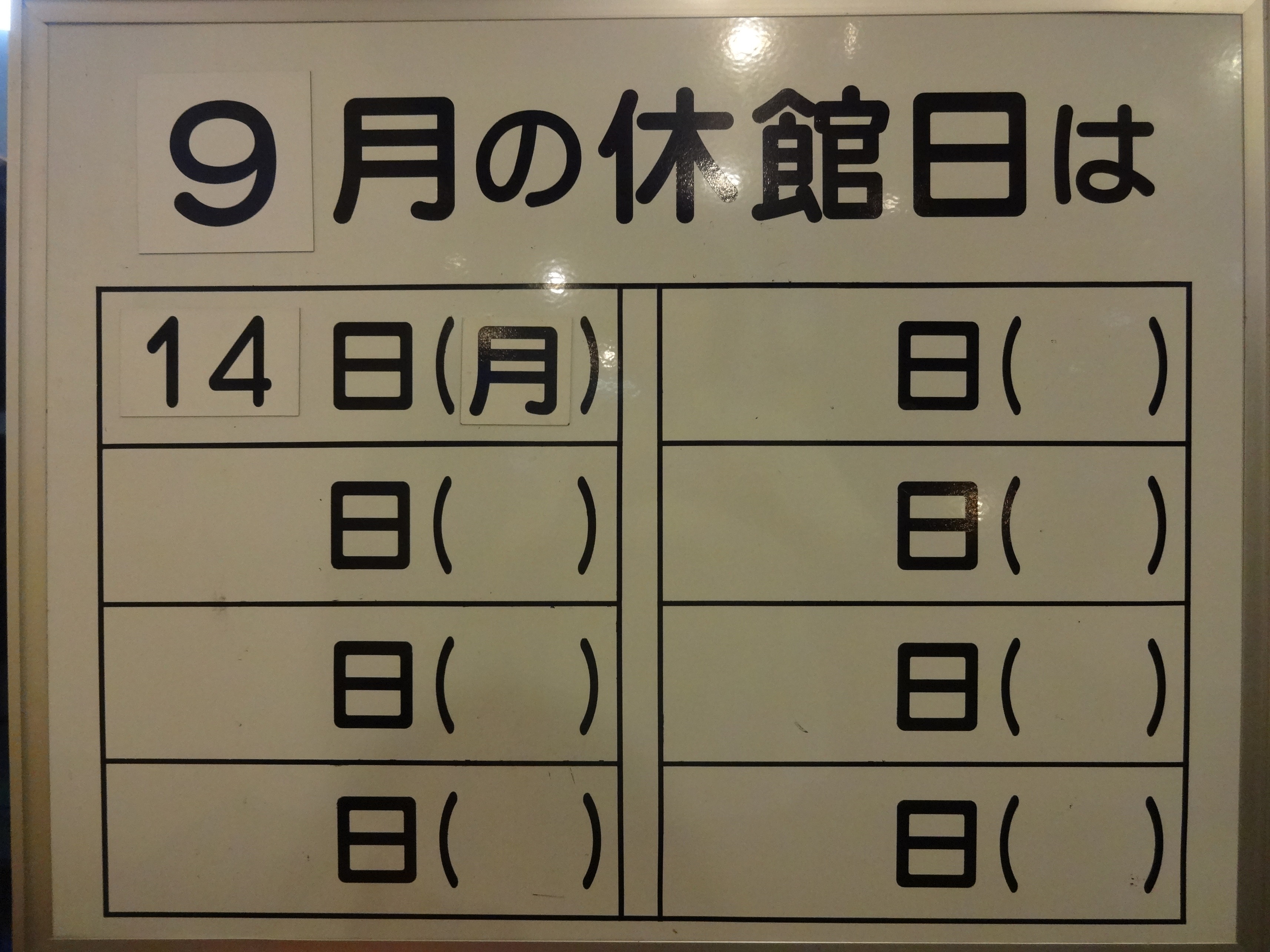 9月の休館日は、