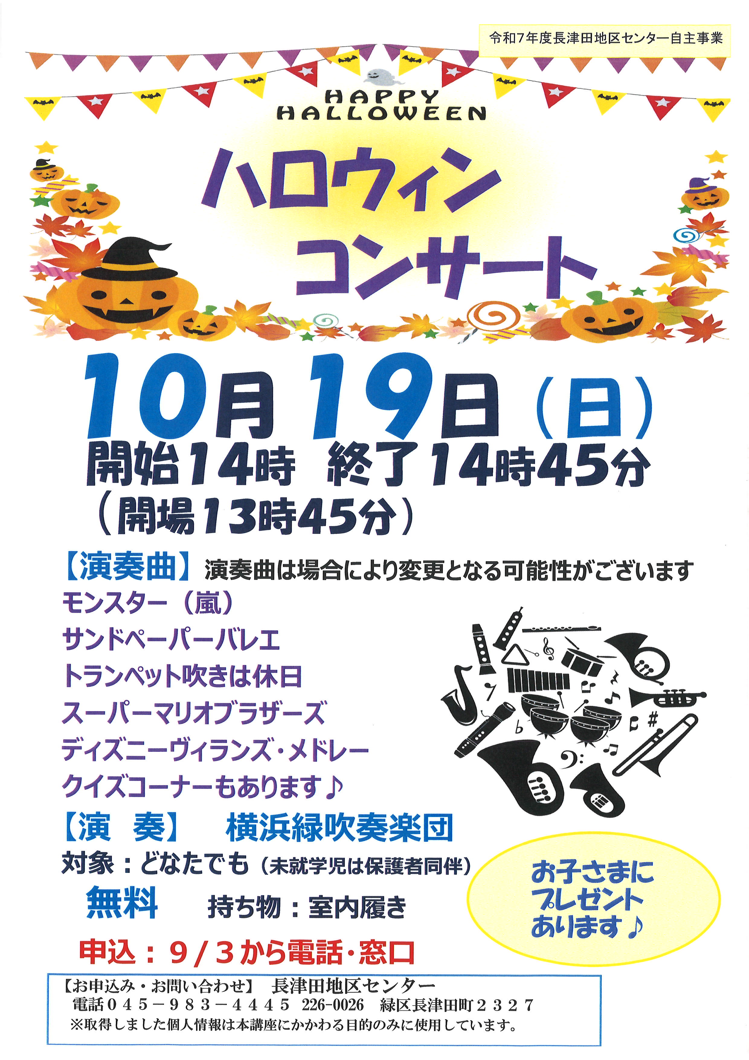 🎃10/19(日)ハロウィンコンサート開催のお知らせ♬