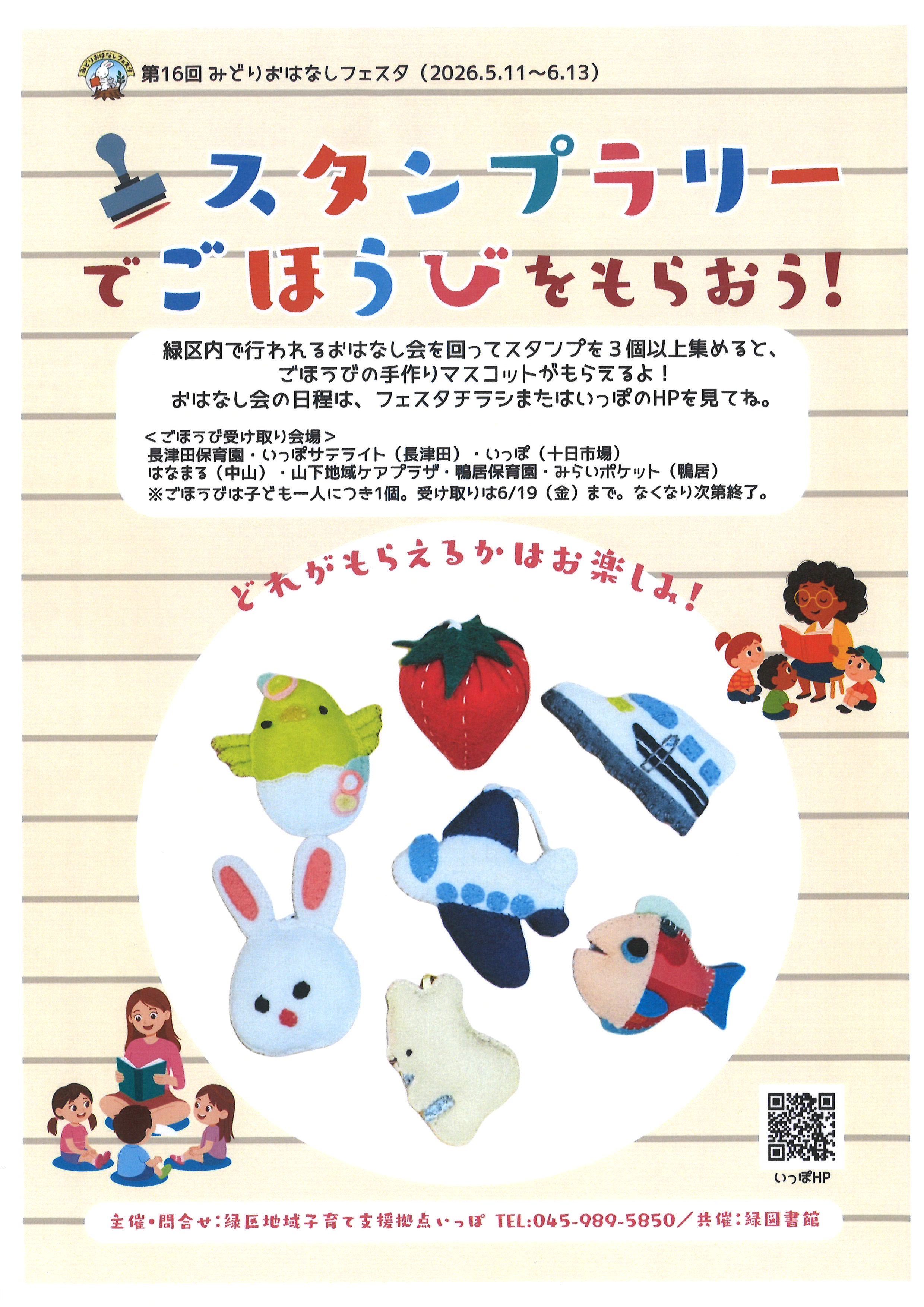 歌やスキンシップを交えて、絵本の読み聞かせ・紙芝居・ペープサートをお届けします♪