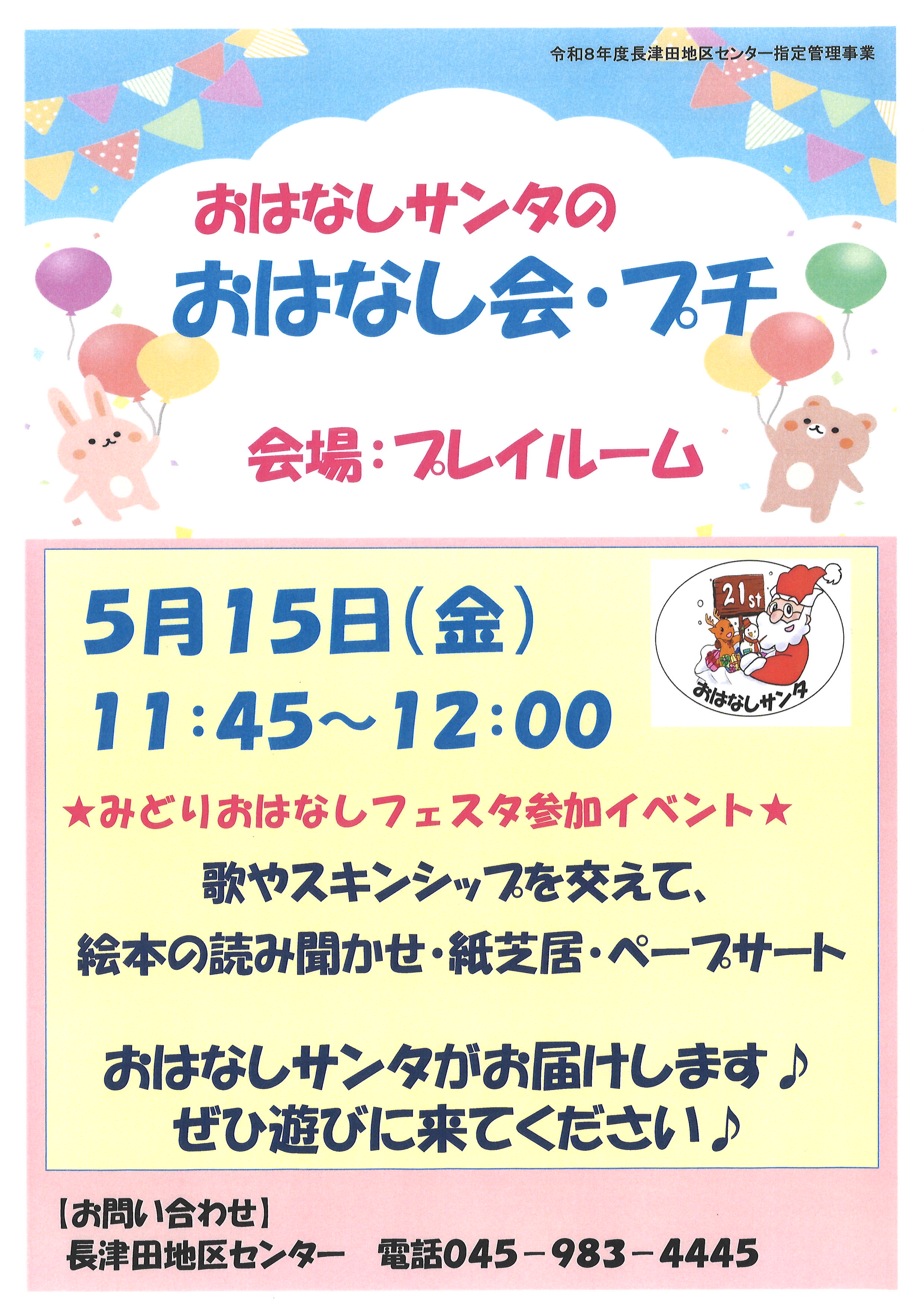 おはなしサンタのおはなし会・プチを下記日時にて開催します。