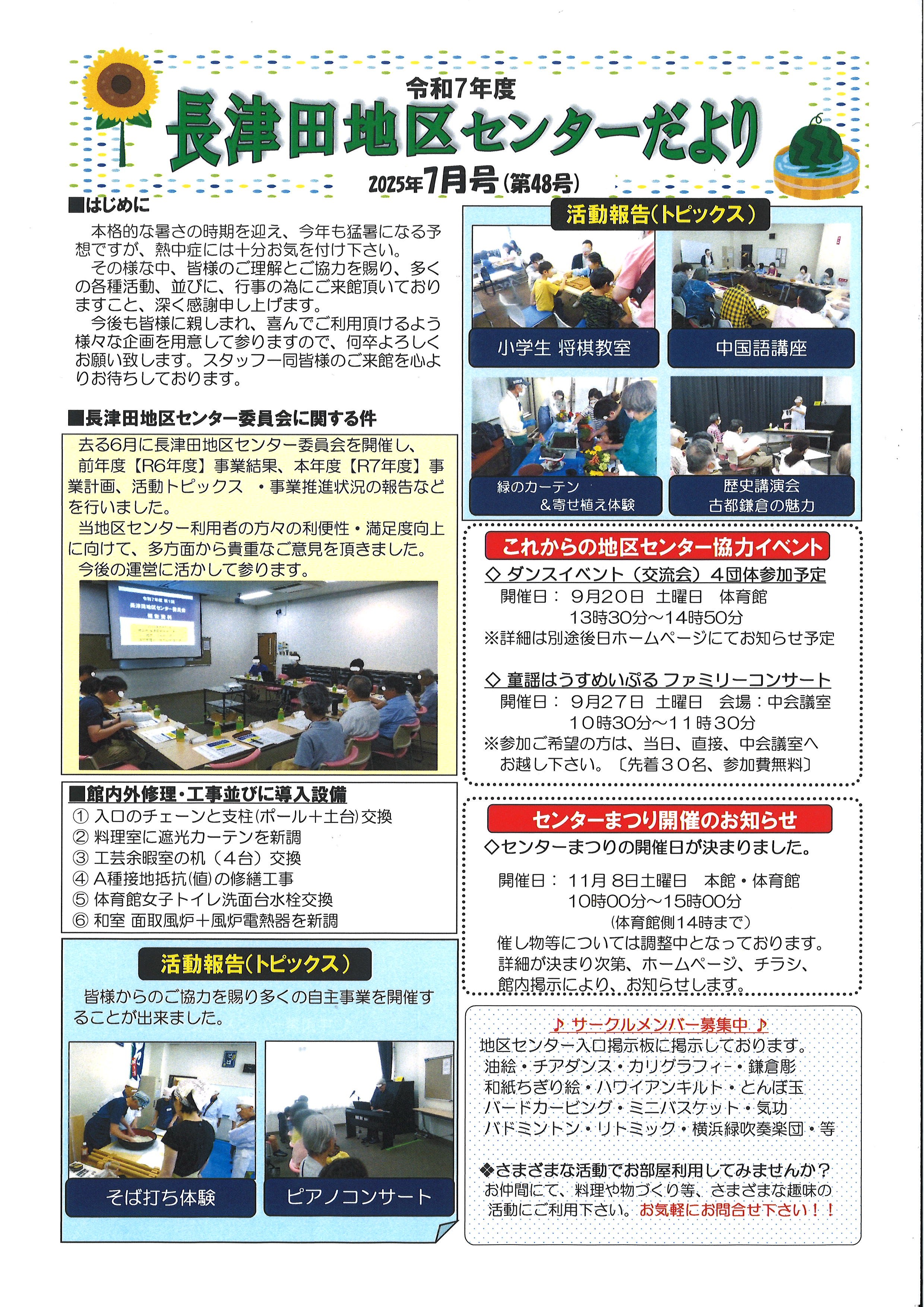 ❖長津田地区センターだより2025年7月号(第48号)を発行致しました
