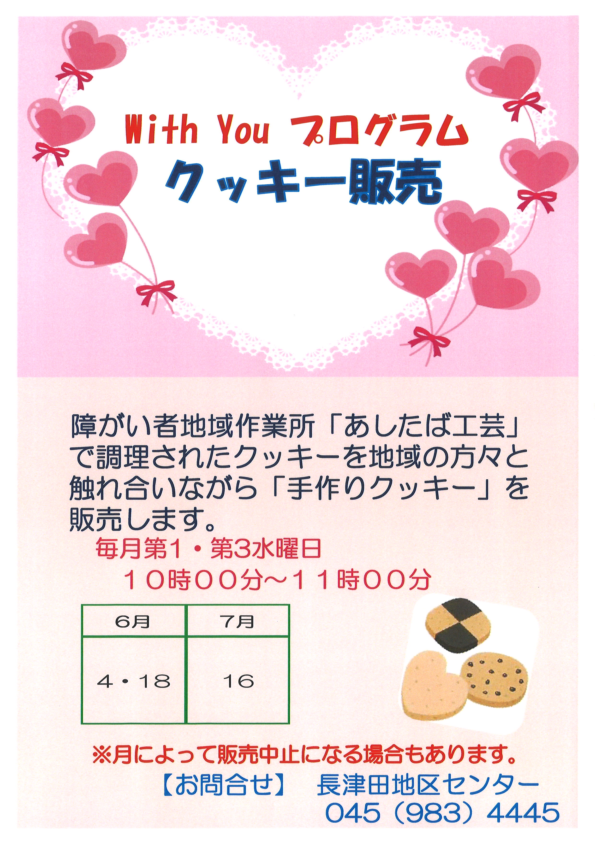 当館では with You プログラムとして、障がい者地域作業所「あしたば工芸」で調理されたクッキーを地域の方々と触れ合いながら「手作りクッキー」を販売しております。