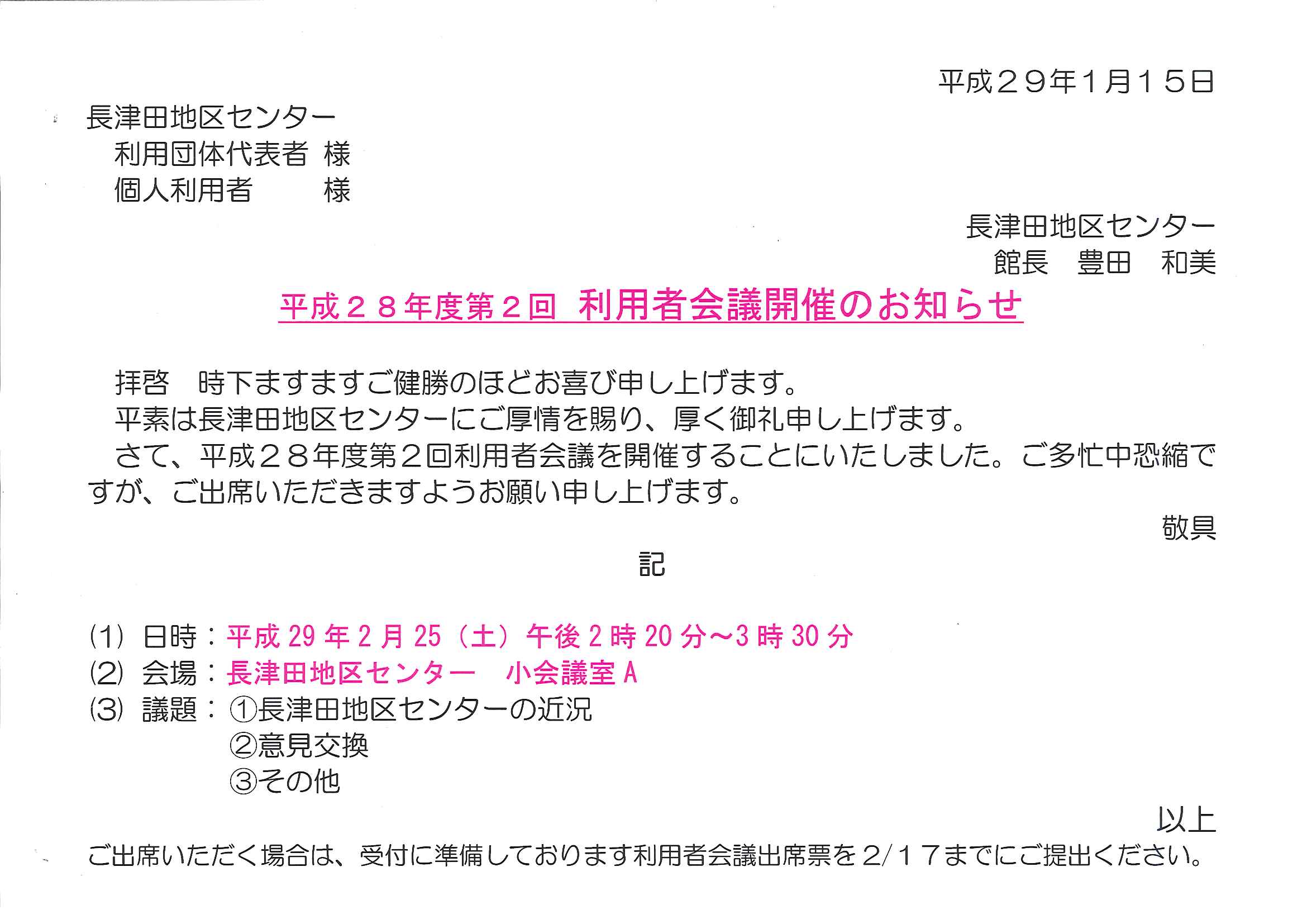 利用者会議のお知らせ