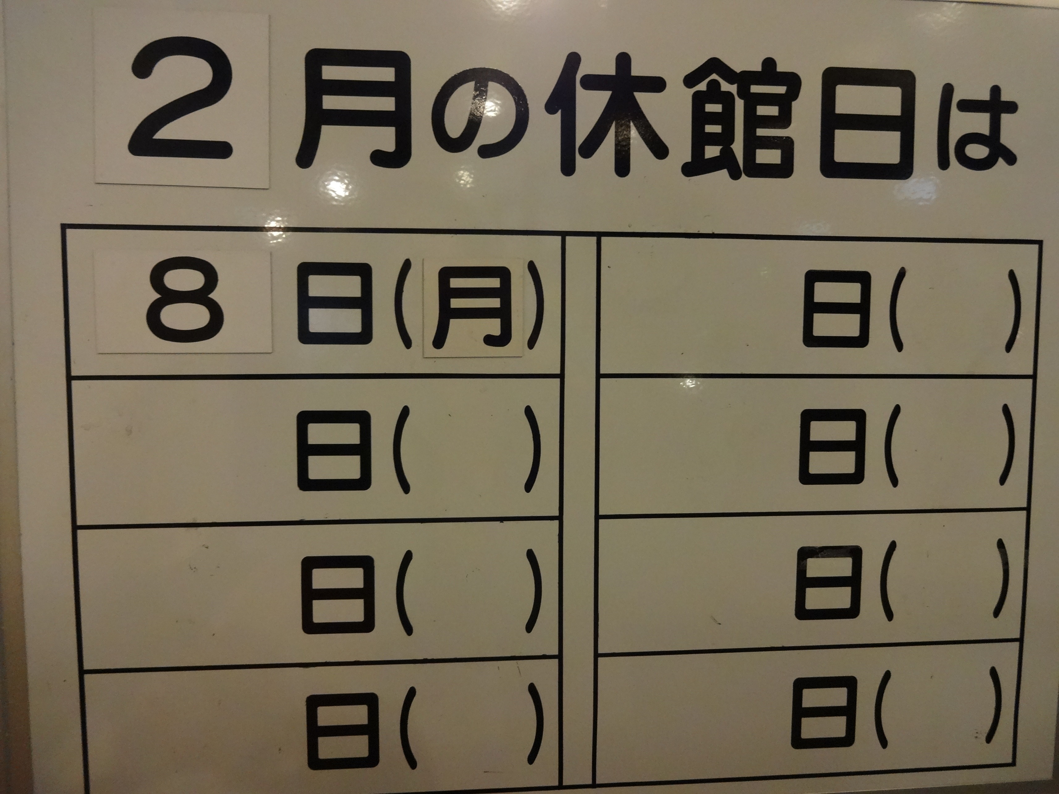 2月の休館日