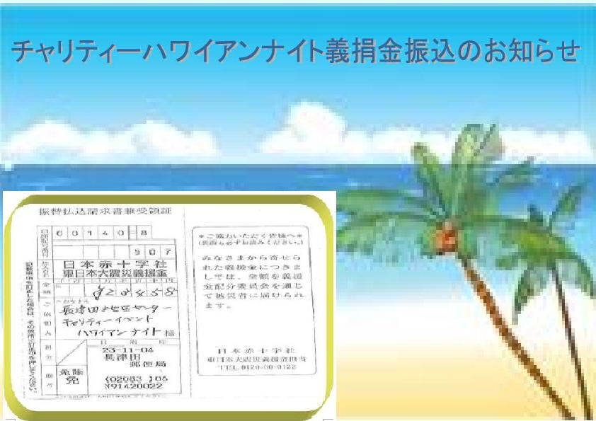 ハワイアンナイト義捐金振込みのお知らせ