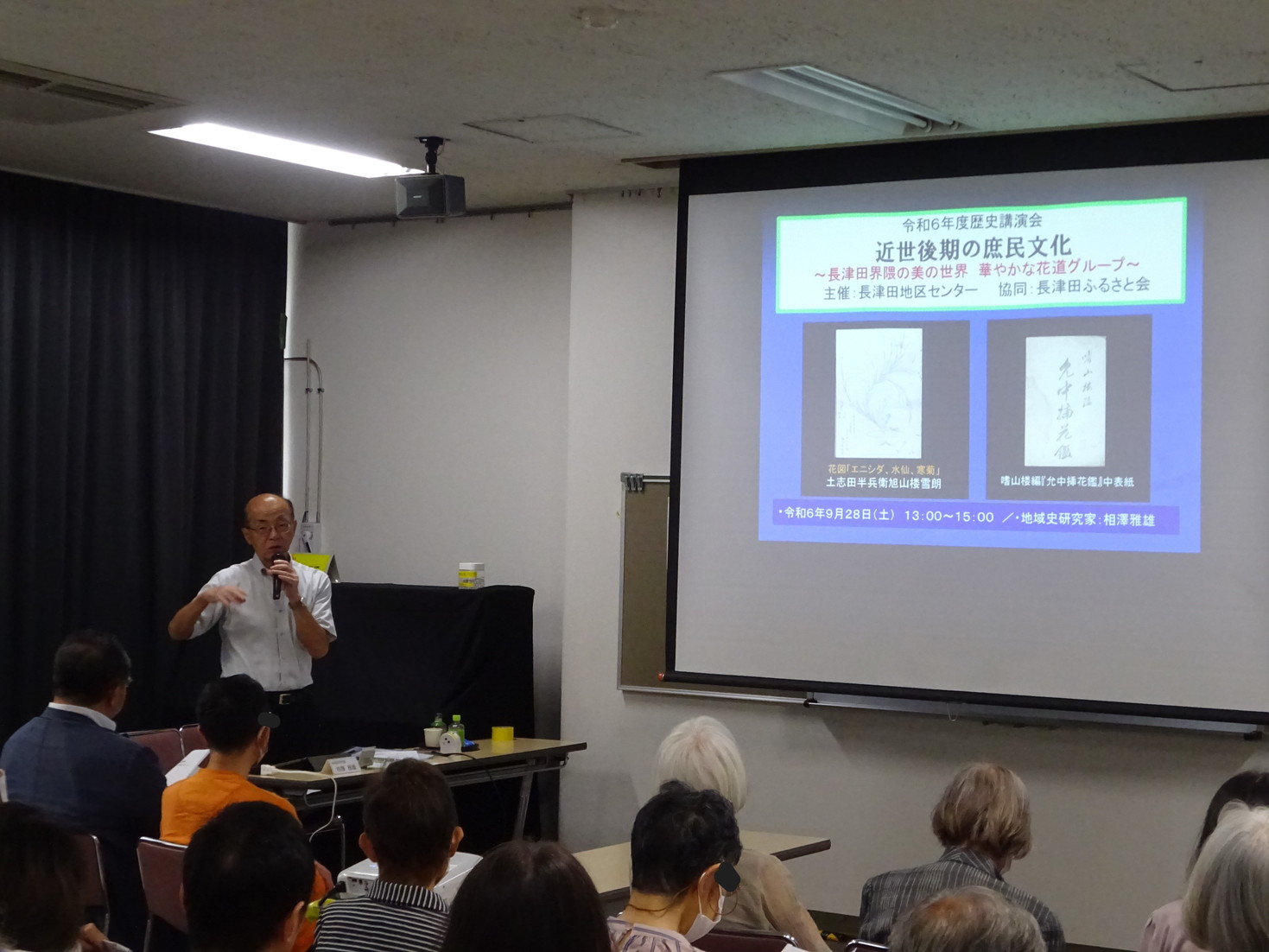 近世後期の長津田宿や恩田村の人たちによる花道などの文芸活動の足跡を探り、大変好評の中、講演会は終了しました。