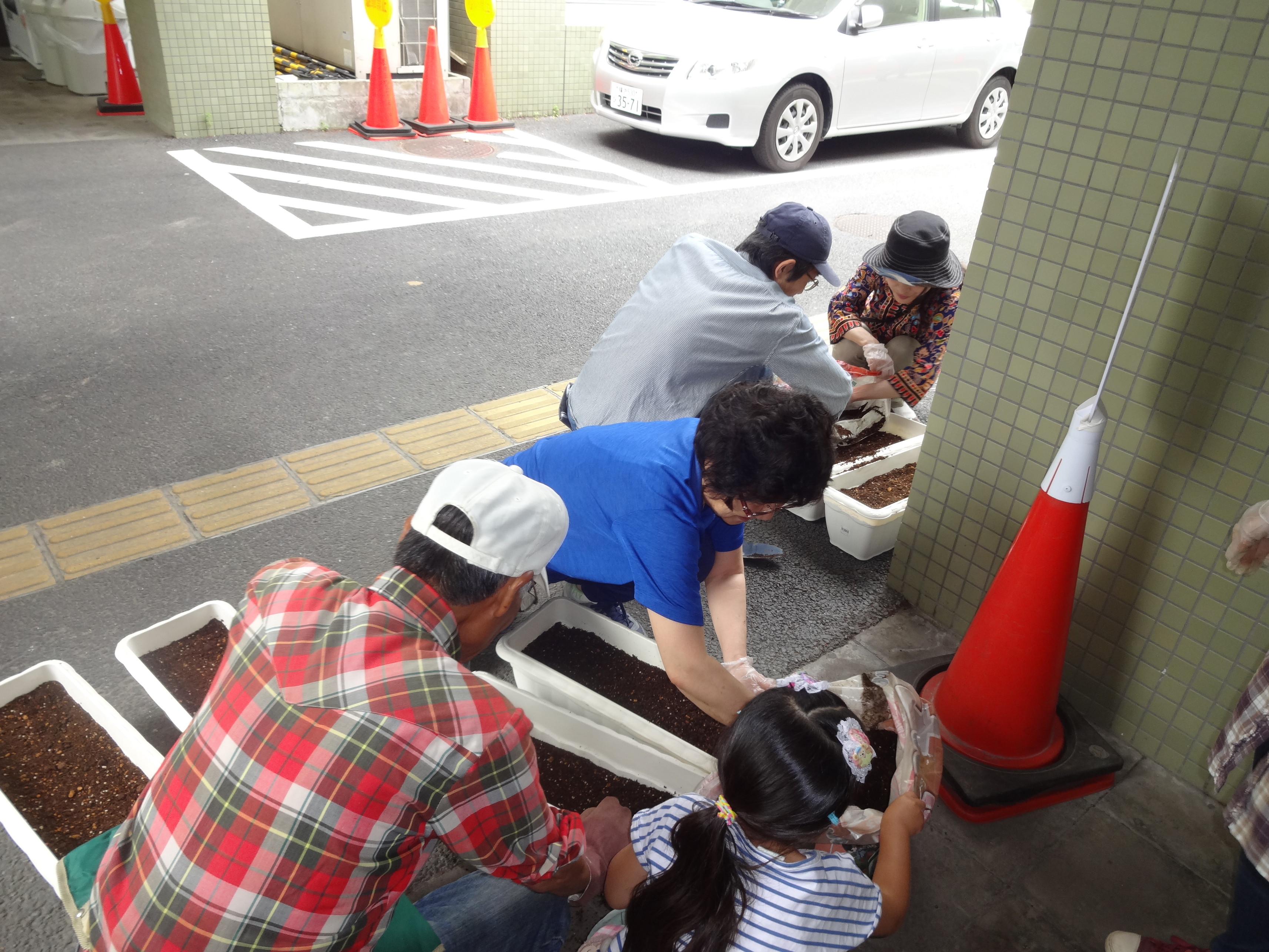 来館の皆さんとゴーヤの苗を植えました!!~緑のカーテン