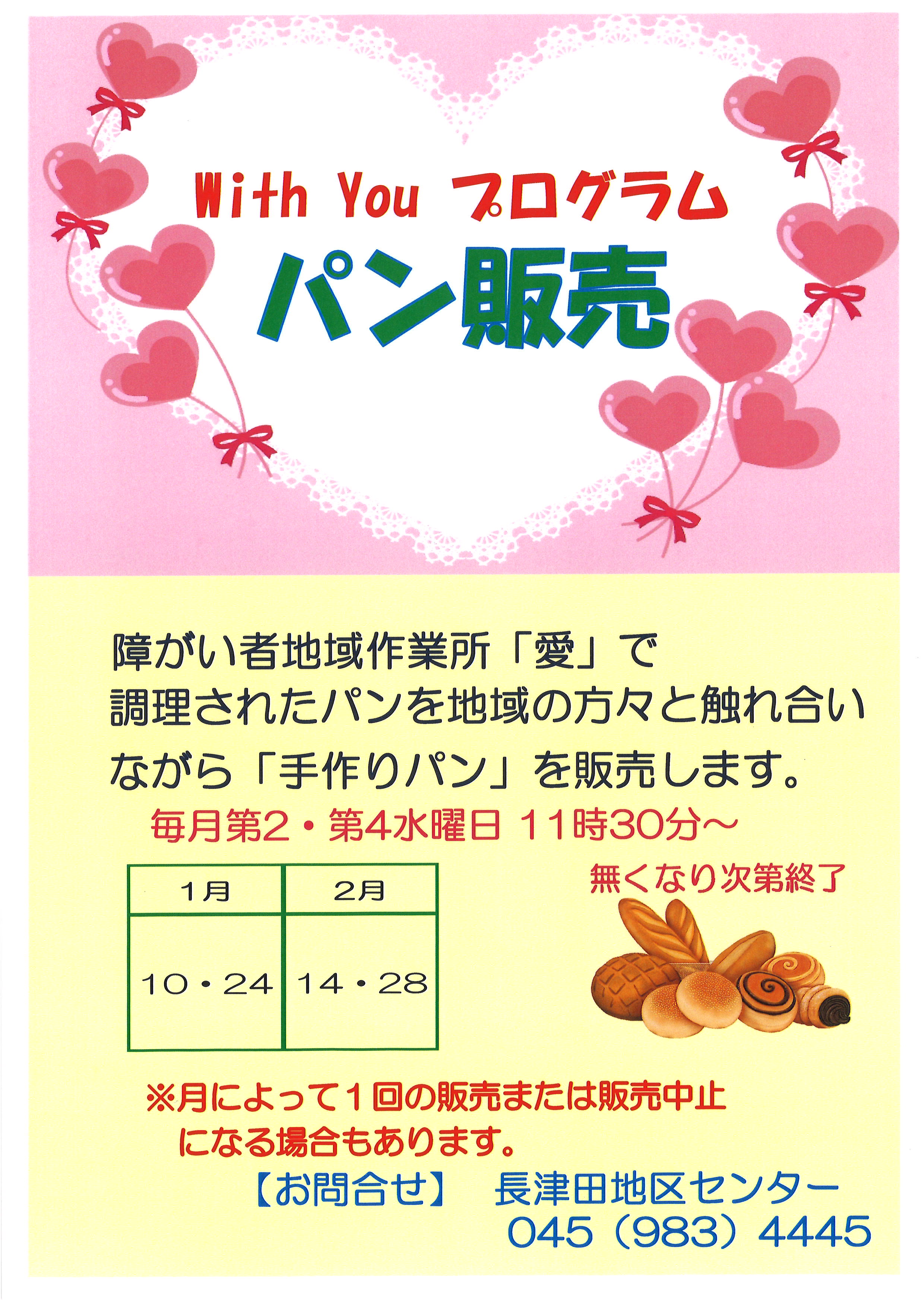 当館では with You プログラムとして、障がい者地域作業所「愛」で調理されたパンを地域の方々と触れ合いながら「手作りパン」を販売しております。